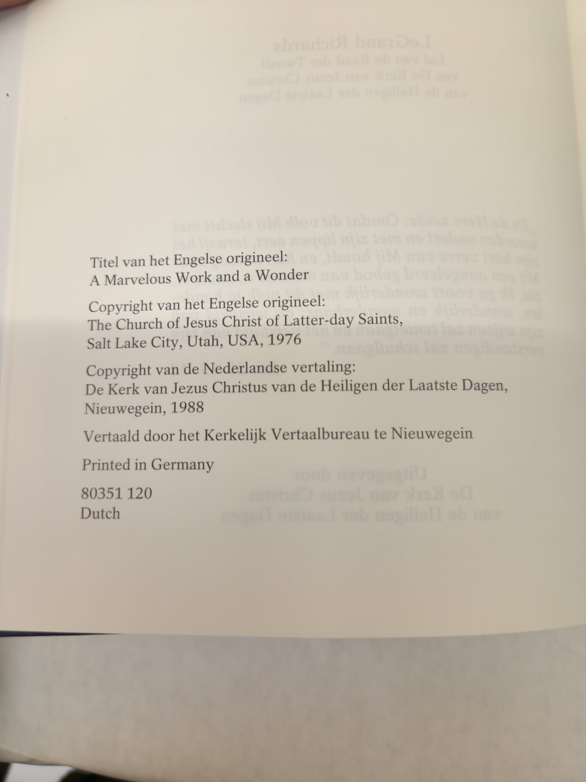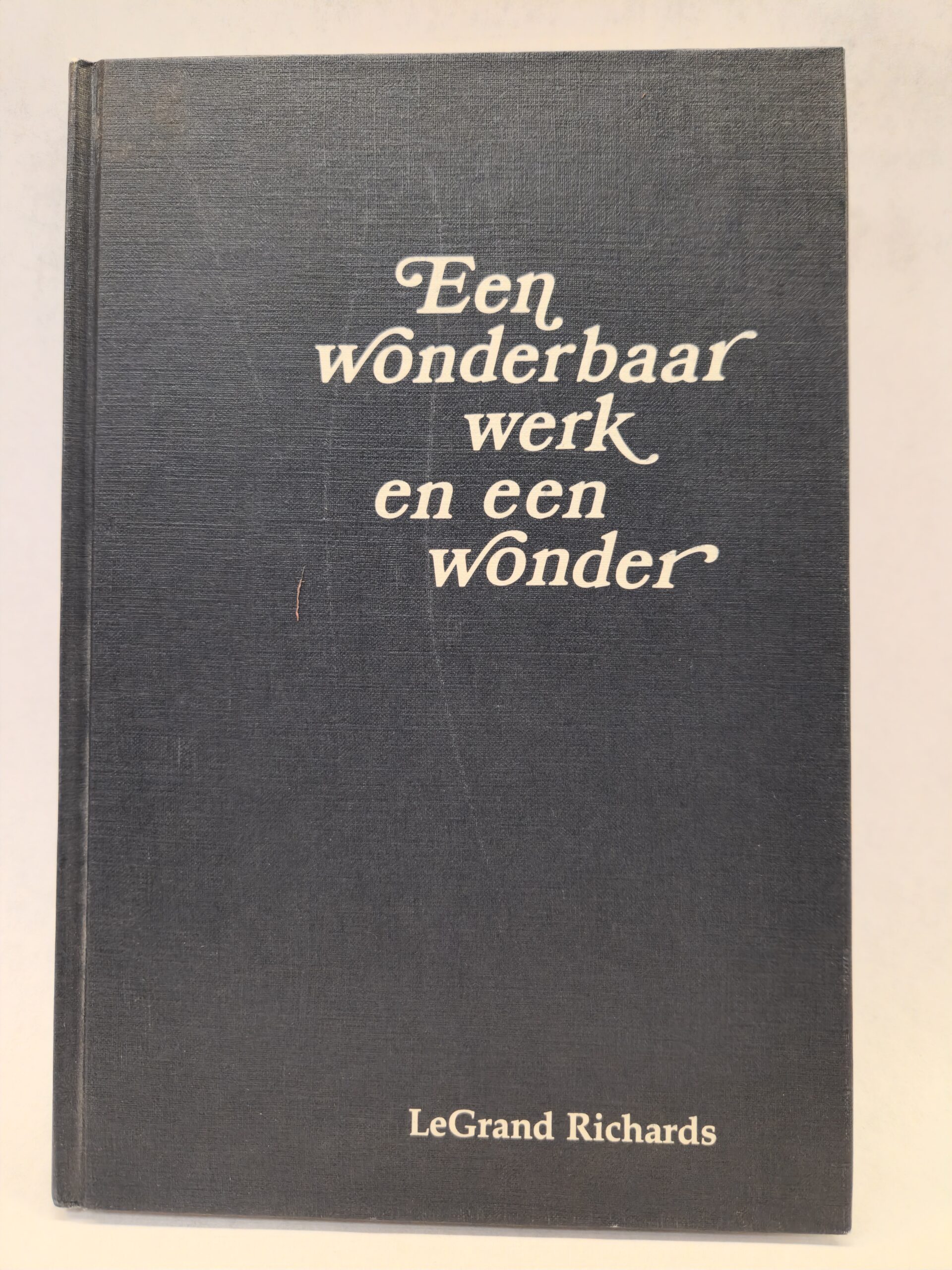 Een wonderbaar werk en een wonder (A Marvelous Work and a Wonder in Dutch, 1988, Hardcover) No marks/writing on pages. Corners and edges show minimal shelf wear. Binding is good. Cover, front and back, has some scratch marks and smudge marks. Back cover also has a selling sticker.