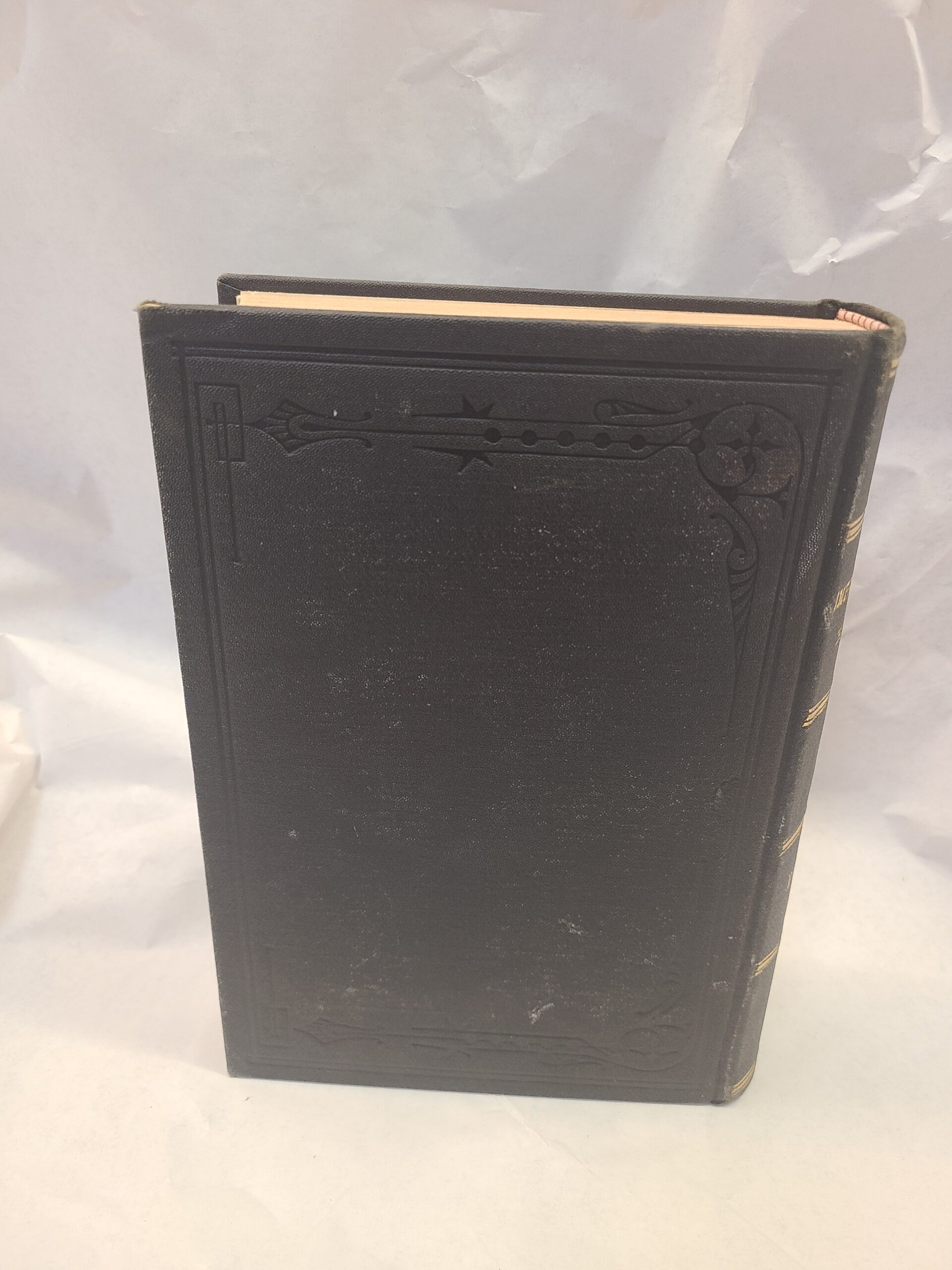 Good condition. Some cracking inside along binding but still holding strong. A few small tears to bottom of pages. Light scrapes/smudges to front and back covers, light wear to edges/corners. Some markings in pen and pencil throughout.