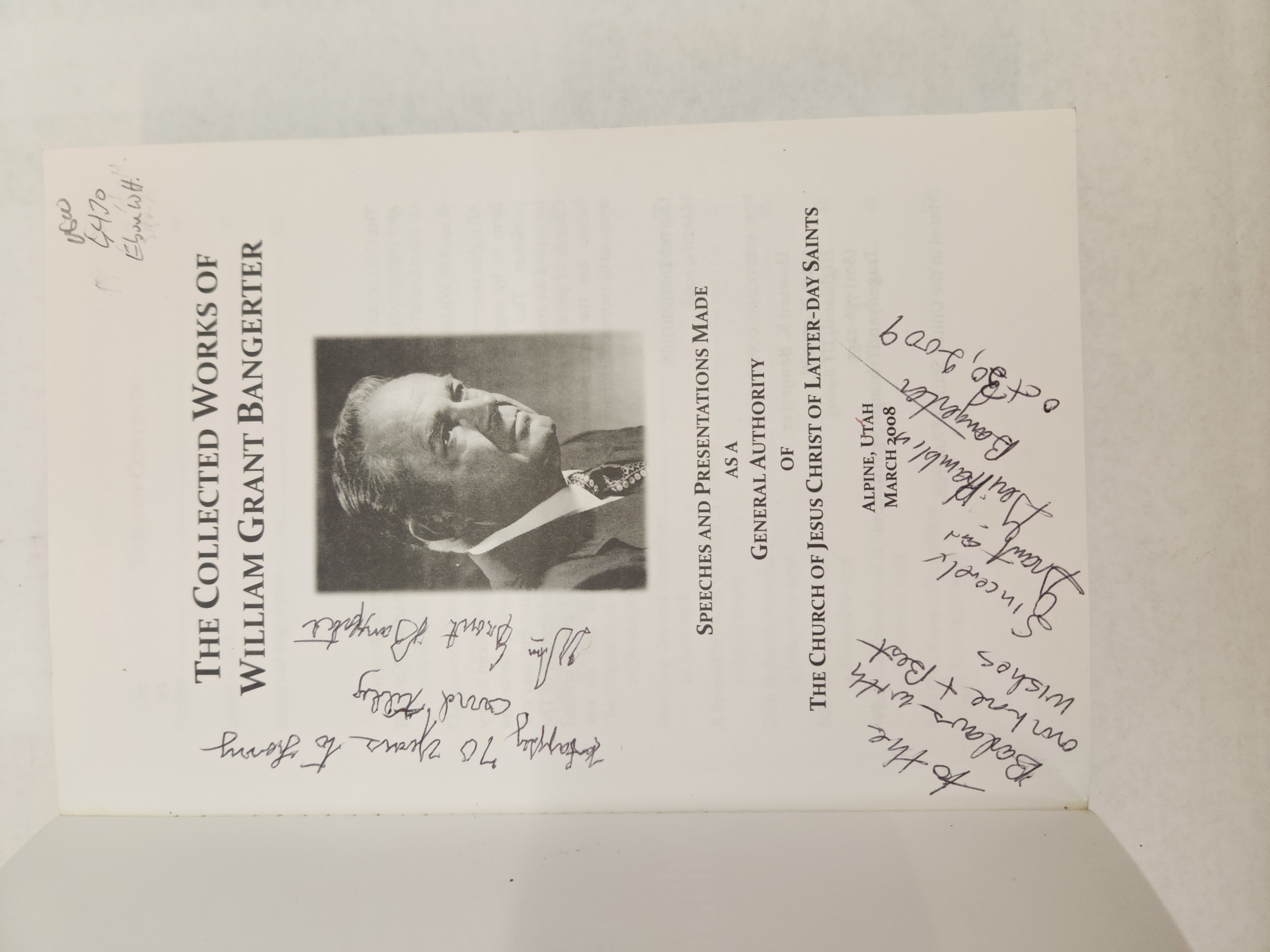 The Collected Works of William Grant Bangerter:: Speeches and Presentations Made as a General Authority of The Church of Jesus Christ of Latter-day Saints (2008, Paperback) No marks/writing on pages, except for first page (see pic in gallery). Binding is good. Corner and edges show moderate shelf wear. Cover has sticker residue, light scratch marks, and a couple smudge marks. Page edge end has a few smudge marks (see pic in gallery).
