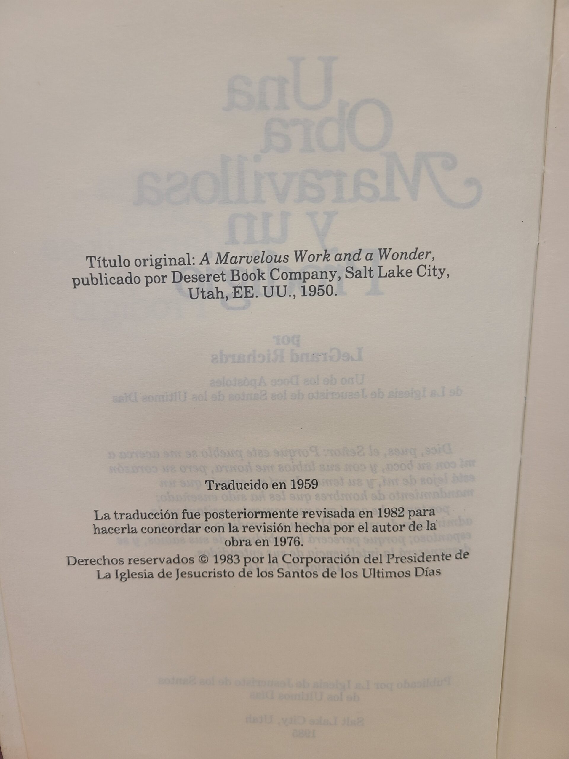 Una Obra Maravillosa Y Un Prodigio-Hardcover with dust-jacket-1985-LeGrand Richards