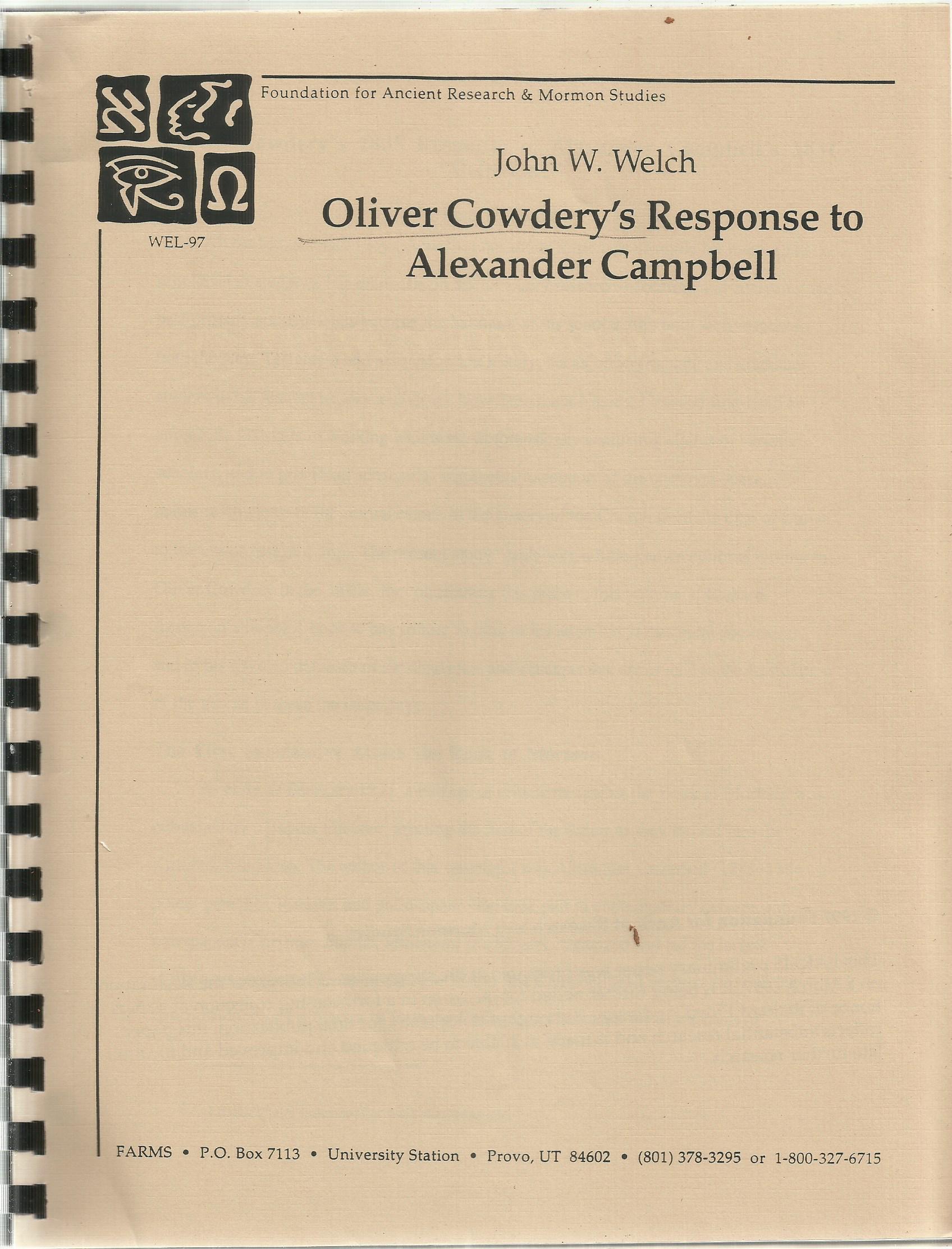 Oliver Cowdery’s Response to Alexander Campbell by John W. Welch & The Return of Oliver Cowdery by Scott H. Faulring