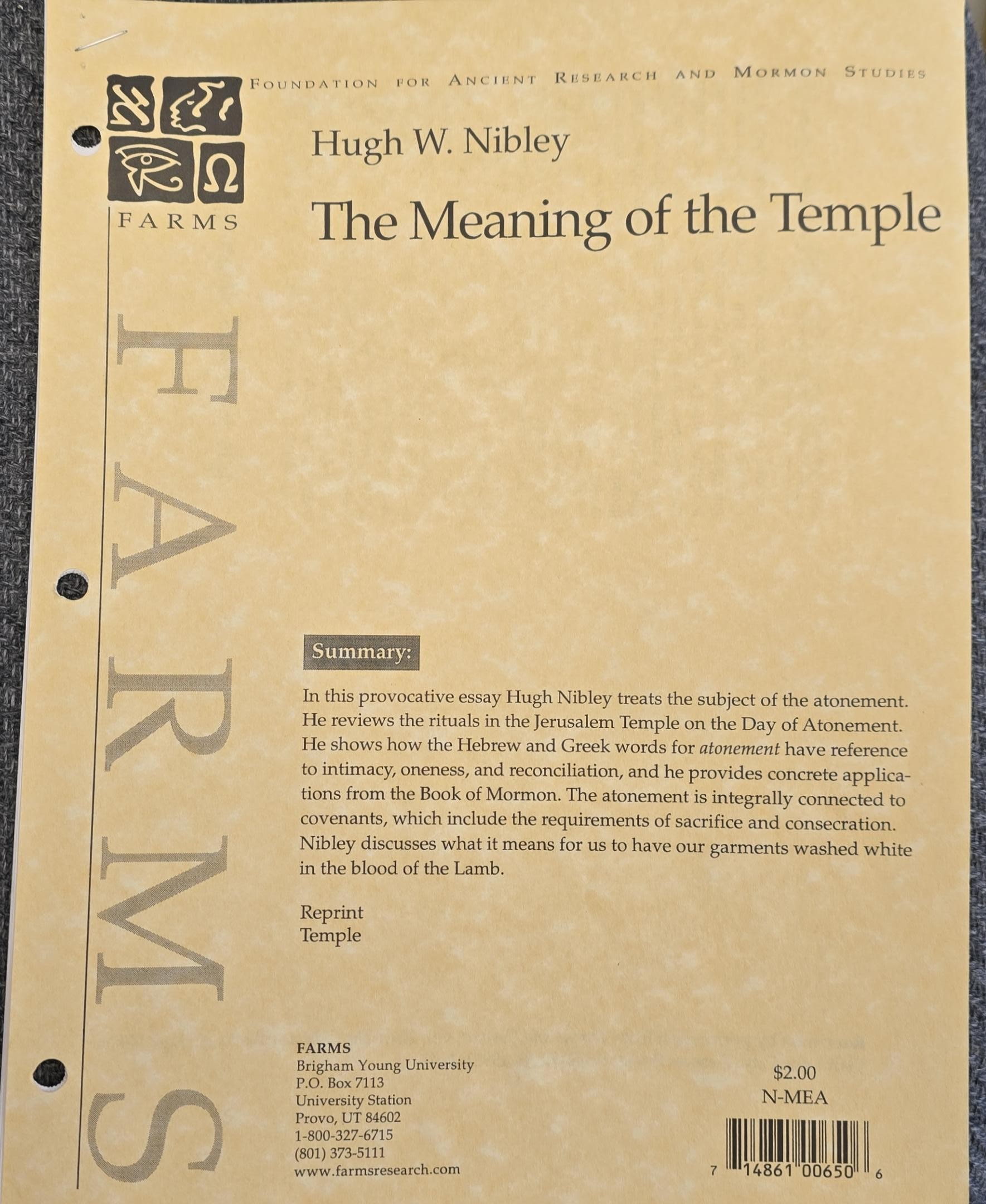 / The Meaning of the Temple (1992) ~ by Hugh W. Nibley