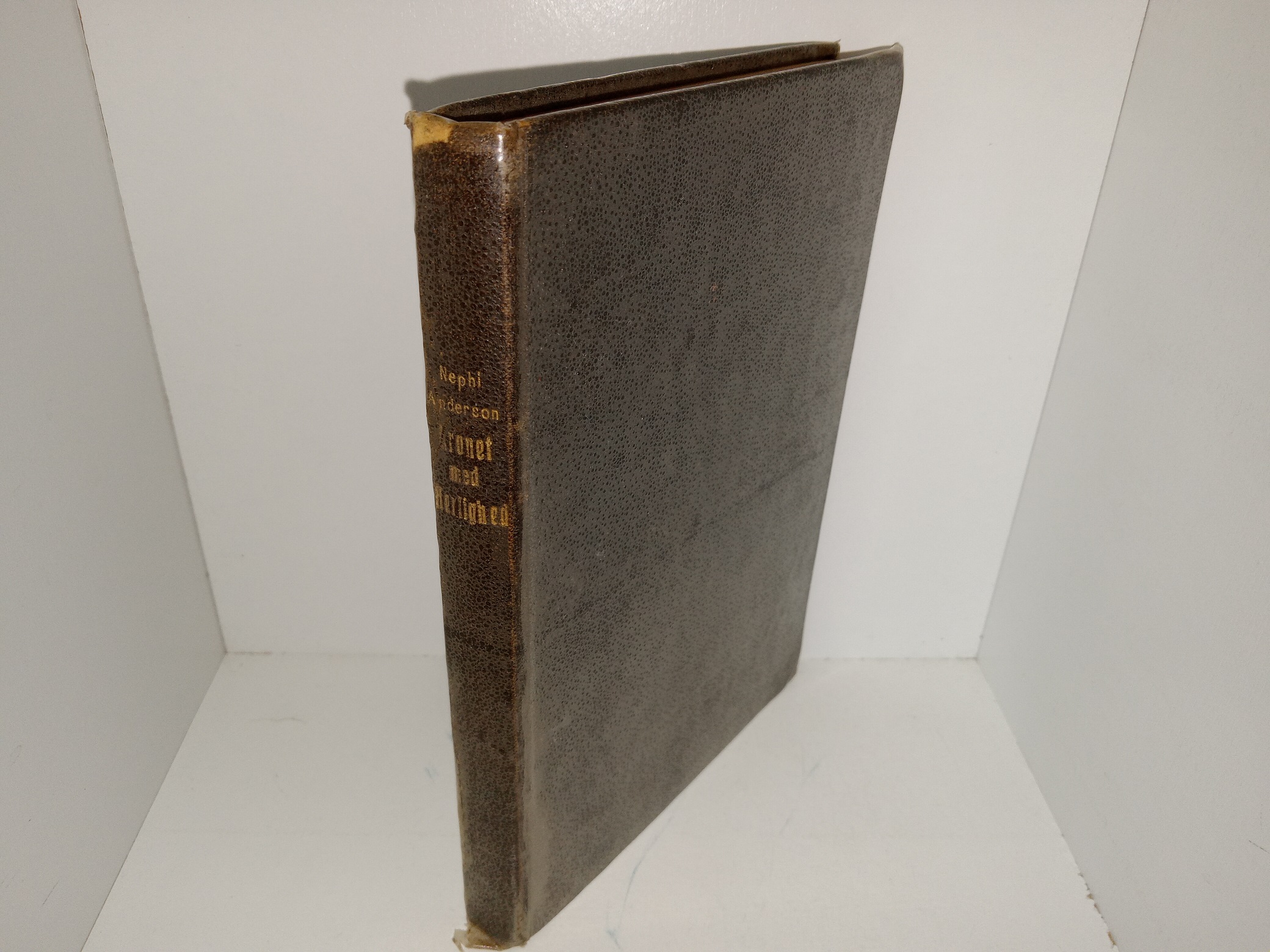 Fair condition, dark gray hardcover with a laminated cover. The cover also has scuffing, some crushed corners, and some small tears. Both inside covers have ink stamps. The title page has some marks and writing in pen, and the top margins has been cut out and is missing. The internal binding is torn and a bit loose. The following page has writing in pencil. Some pages have stains, yellowing, small tears, or creases.