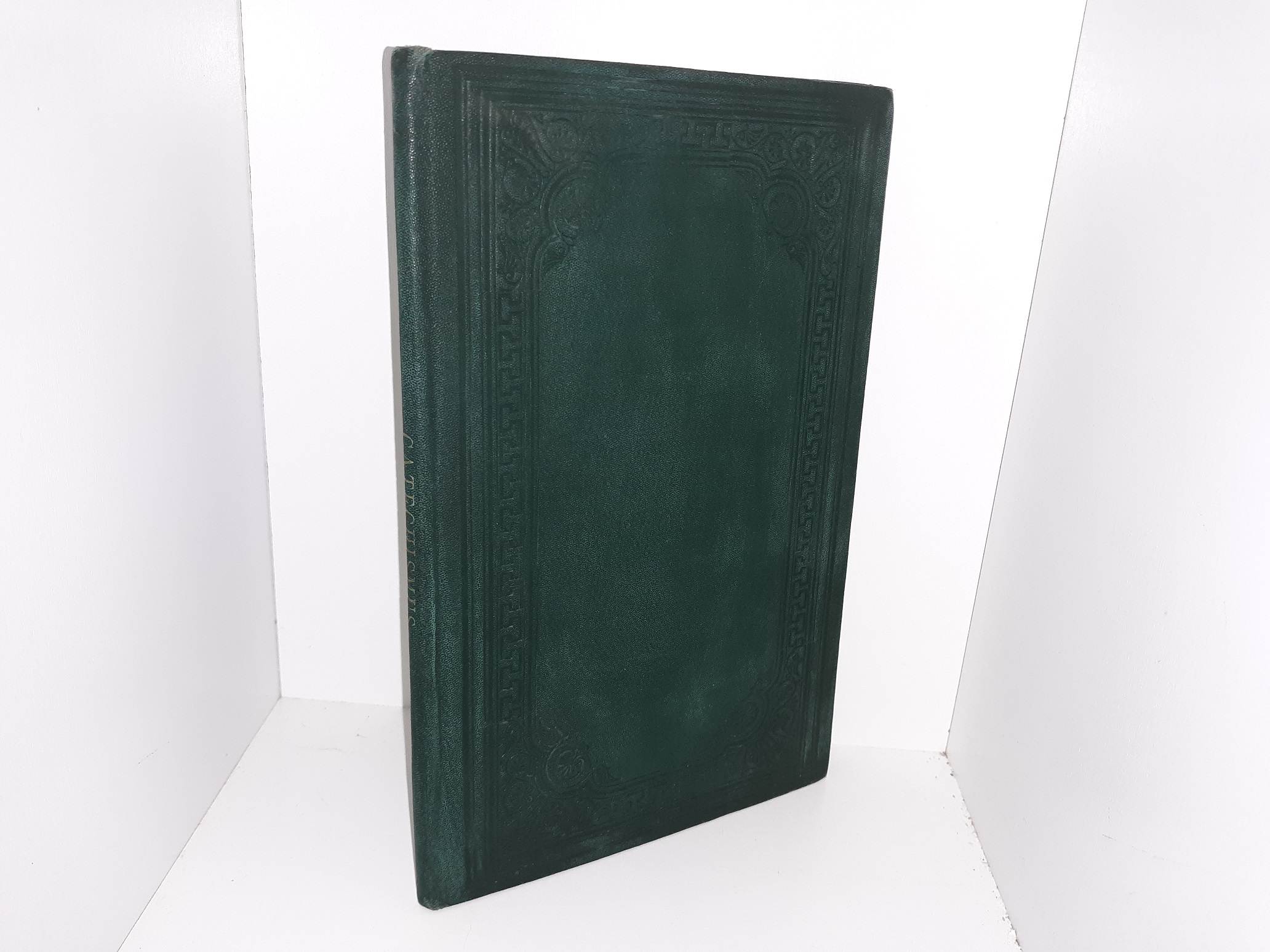 Fair condition, thin, dark green hardcover with no dust jacket. The cover has some scuff marks, and the corners have some small tears and fraying. The internal binding is torn and slightly loose. The inside front cover has some wrinkles and minor stains. The front flyleaf has writing in pencil. A couple pages have minor scuff marks in the margins, but otherwise, the text throughout is clean, clear, and legible.