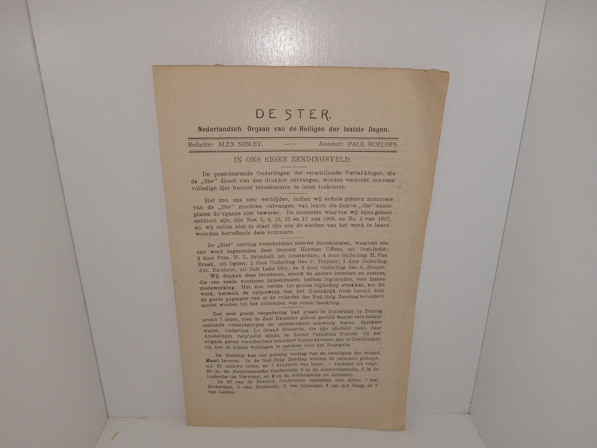 (Dutch: The Star: Dutch Organ of the Saints of the Taatste Days editorial staff)