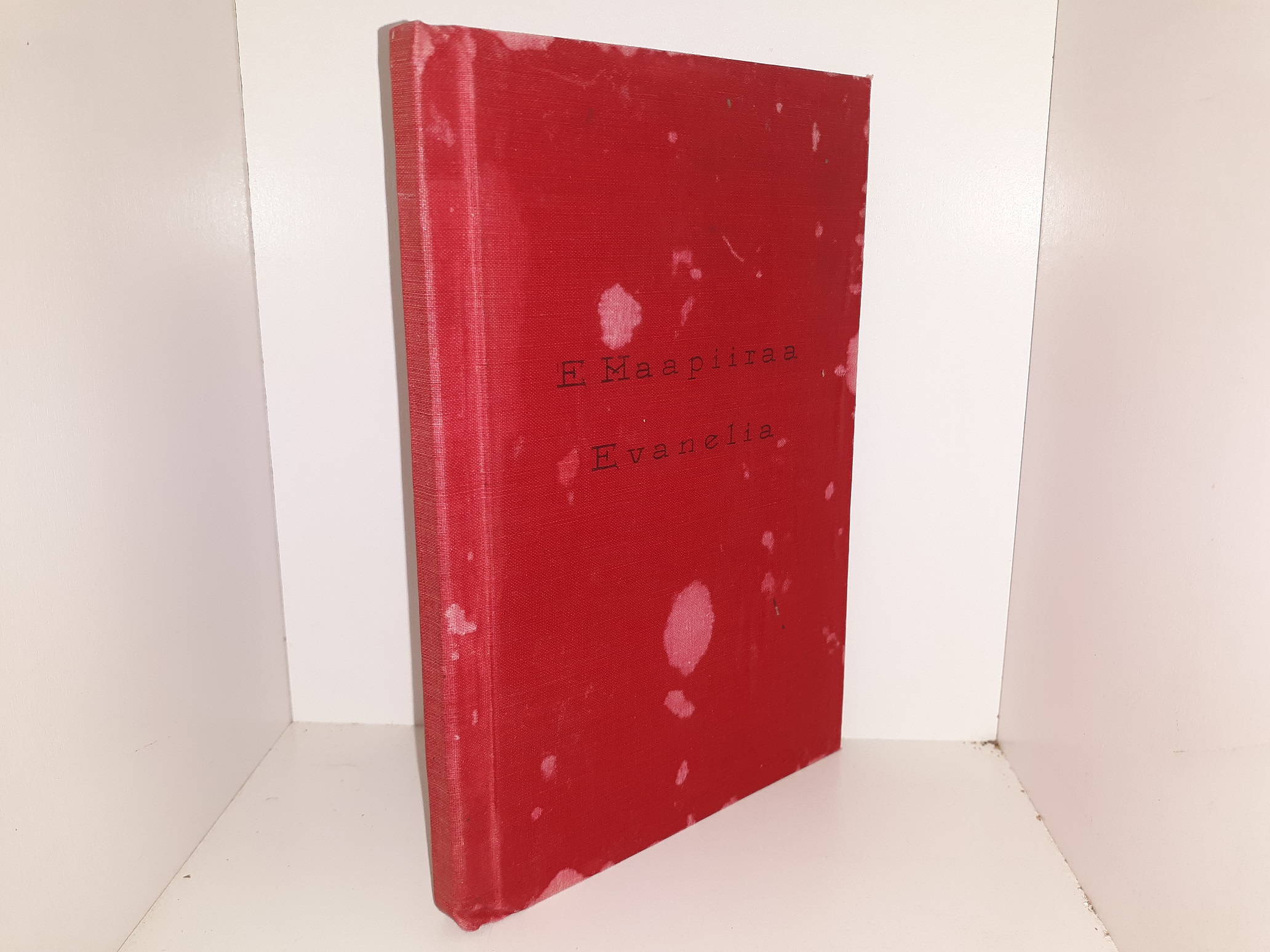 Fair condition, thin, red hardcover with no dust jacket. The cover has stains, bubbling, crushed corners, and scuffing at the corners. The internal binding is torn. The front flyleaf has writing in pencil and some eraser marks. Text throughout is clean, clear, and legible.