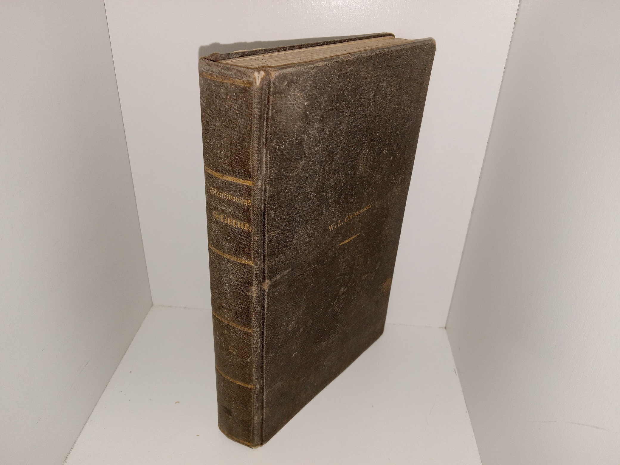 Fair condition, gray hardcover with no dust jacket. The cover has heavy scuffing, stains, small tears or pieces torn off the corners, fraying, and slightly bent corners. The front flyleaf has been torn out and is missing. Some pages have stains, creases, or wrinkles. The title page has writing in pencil and eraser marks.