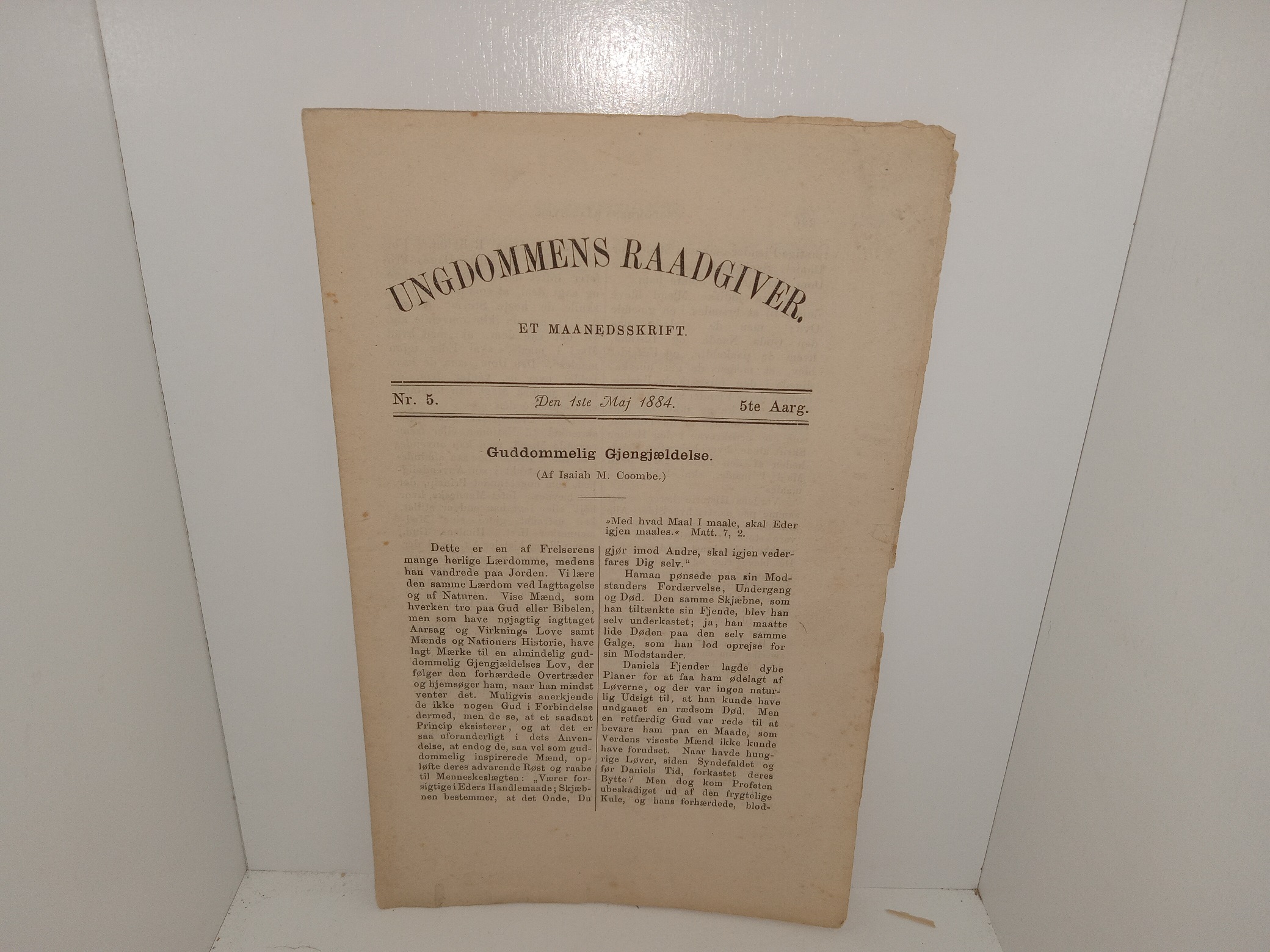 (Danish: The Youth Counselor: No. 5, 5th year, 1st May, 1884)
