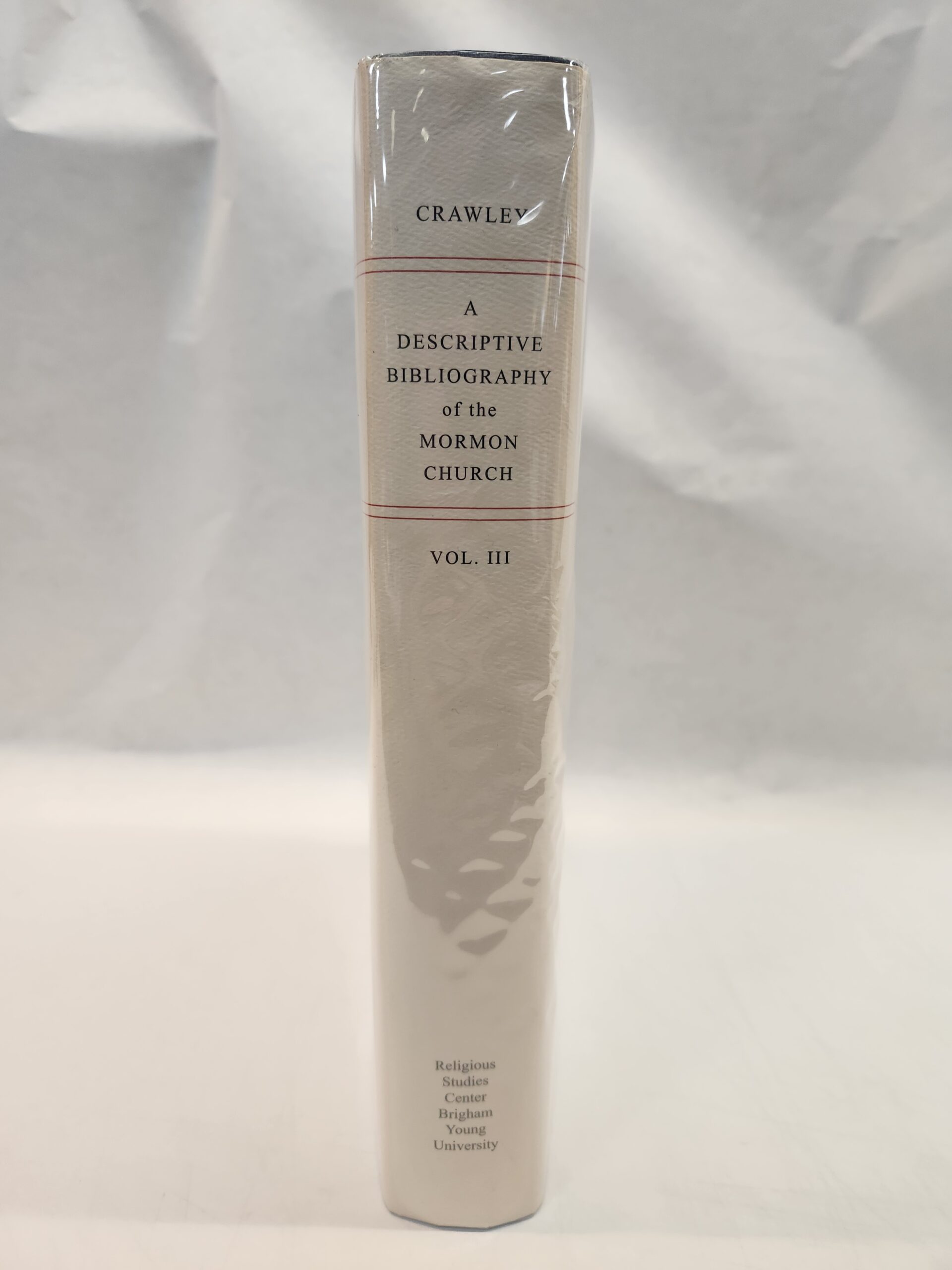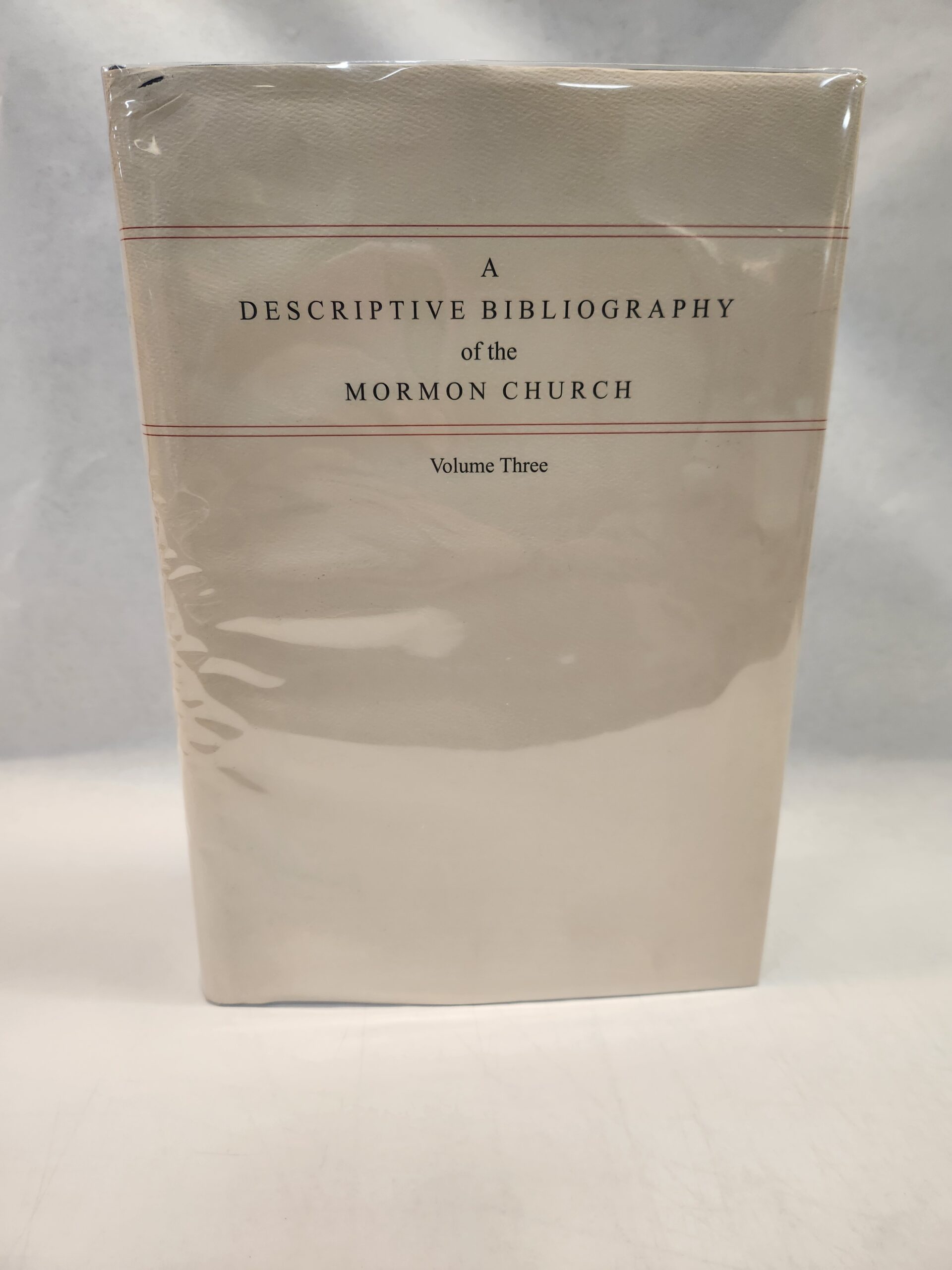 A Descriptive Bibliography of the Mormon Church:: Volume 3 (Hardcover w/ Dust jacket and Clear Protective Sleeve) No marks or writing on pages. Corners and edges show minimal shelf wear. Binding is good. Dust jacket front cover has a small bend mark. Dust jacket back cover has a few smudge marks.