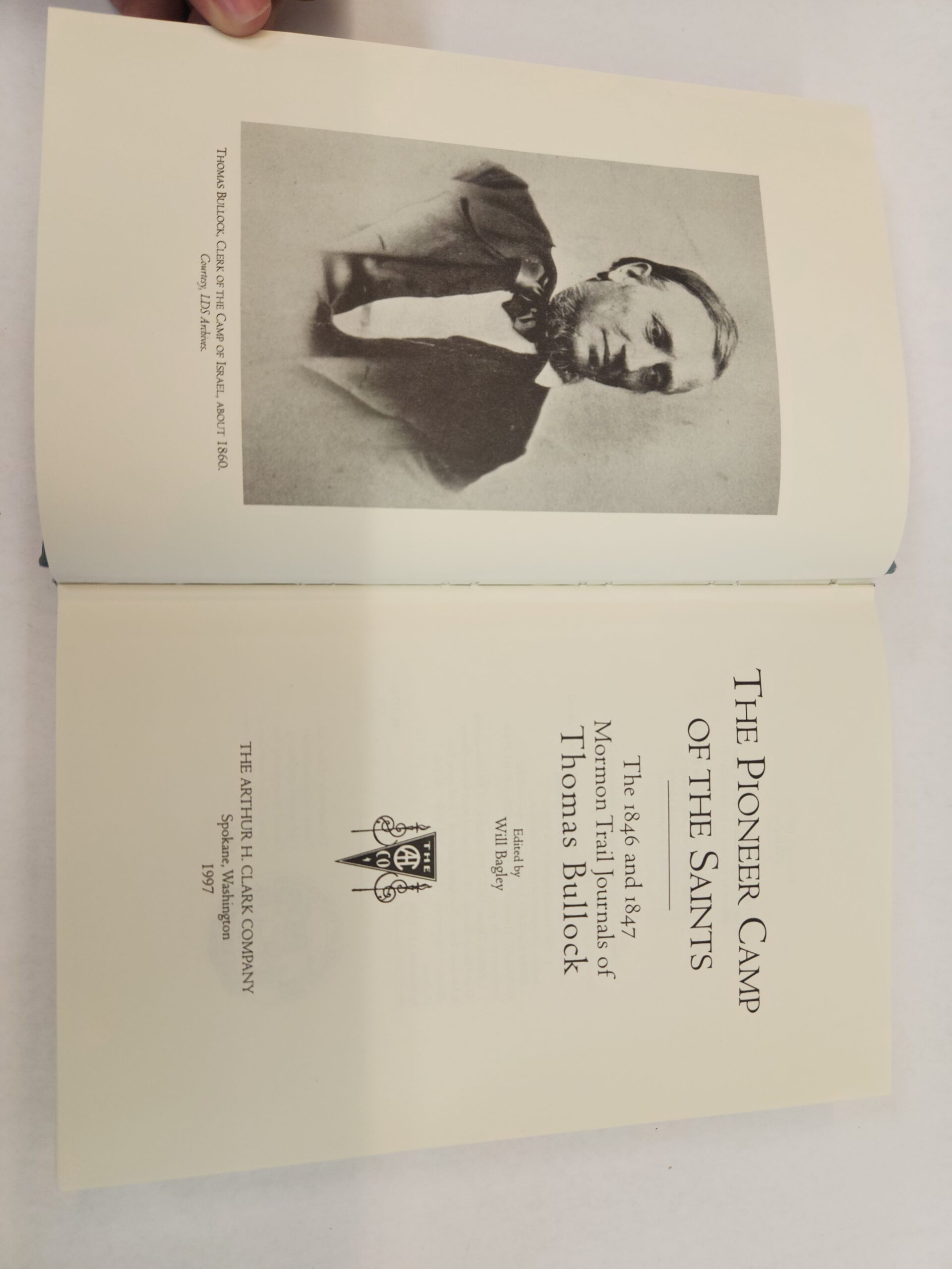 Kingdom in the West:: The Mormons and the American Frontier, Volume 1, The Pioneer Camp of the Saints, The 1846 and 1847 Mormon Trail Journals of Thomas Bullock (1997, Hardcover (Fabric)) Binding is good. Corner and edges show little shelf wear. No writing /marks on pages. Page edge side has a slight red mark on top (see pic). Mormon Pioneer Trail map included.