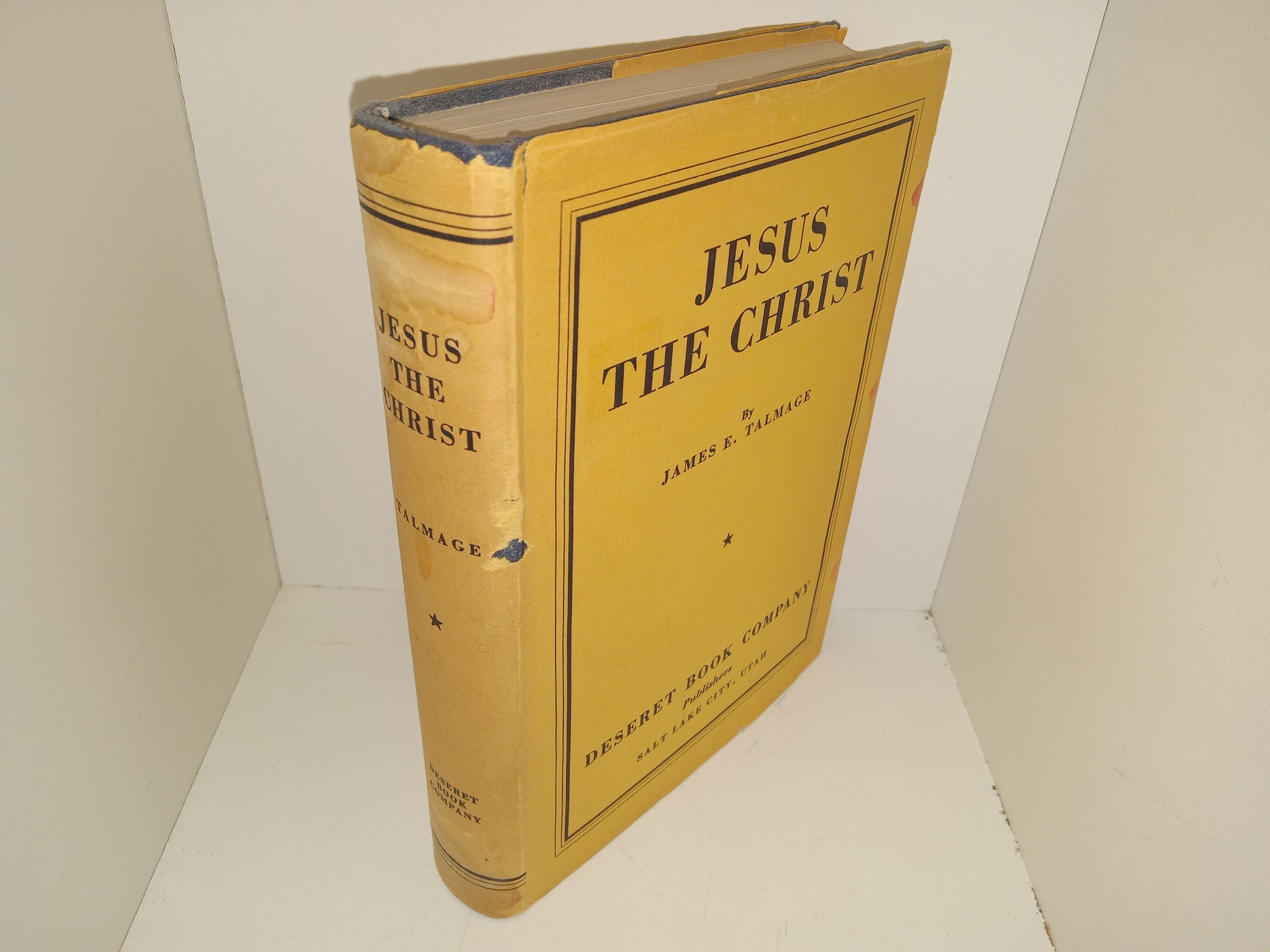 Fair condition hardcover with a dark yellow dust jacket. The dust jacket has stains, tears, pieces torn off, scratches, and some creases. Some pages have stains or wrinkling. The front flyleaf has writing in pen and pencil, and eraser marks.