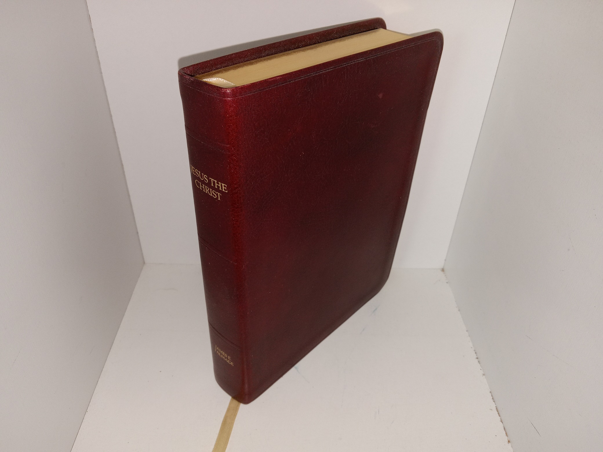 Good condition, burgundy, leather-bound book. The cover has some pale scuff marks. The title page has writing in pencil. Some pages have some marks in pink marker.