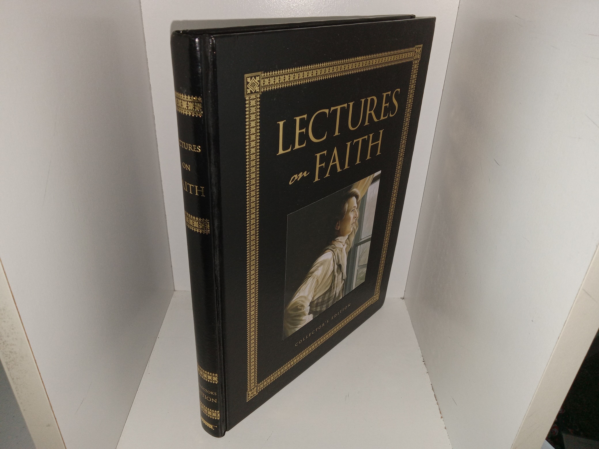 Very good condition, black, leather-bound book. The cover has a bent corner and minor scuffs. The front flyleaf has writing in pencil. Text and illustrations throughout are clean, clear, and legible.