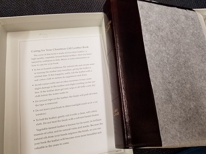 Beautiful burgundy Italian leather edition; the 2009 Church Employee Christmas Gift edition; fantastic condition; still in the tissue paper and in the original white box!