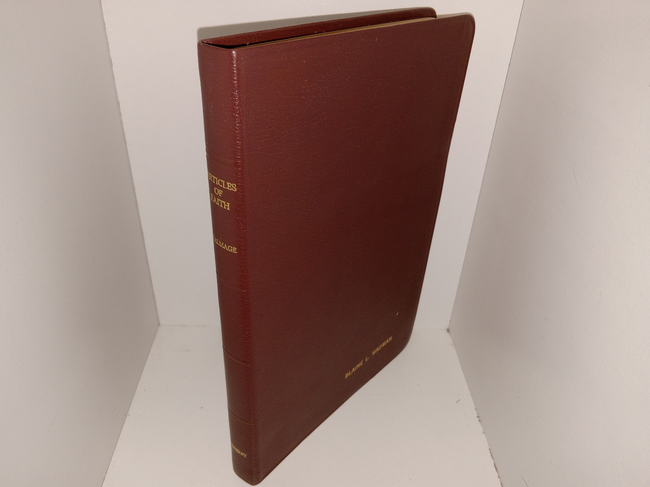 Good condition, brown, leather-bound book. The sticker in front is missing. The cover has the name of a previous owner engraved upon it. The front flyleaf has adhesive residue. The title page has writing in pencil and eraser marks. Text throughout are clean, clear, and legible.