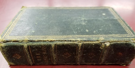Black Leather binding; a bit worn; see our photographs. Some wear to edges of boards and spine; some cracking along the front hinge of the spine.