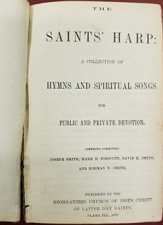 The Saints’ Harp. A Collection of Hymns and Spiritual Songs For Public and Private Devotion. Compiling Committee: Joseph Smith, Mark H. Forscutt, David H. Smith, and Norman W. Smith. Published by the Reorganized Church of Jesus Christ of Latter Day Saints. Plano, Ill., 1870. 792 pages.