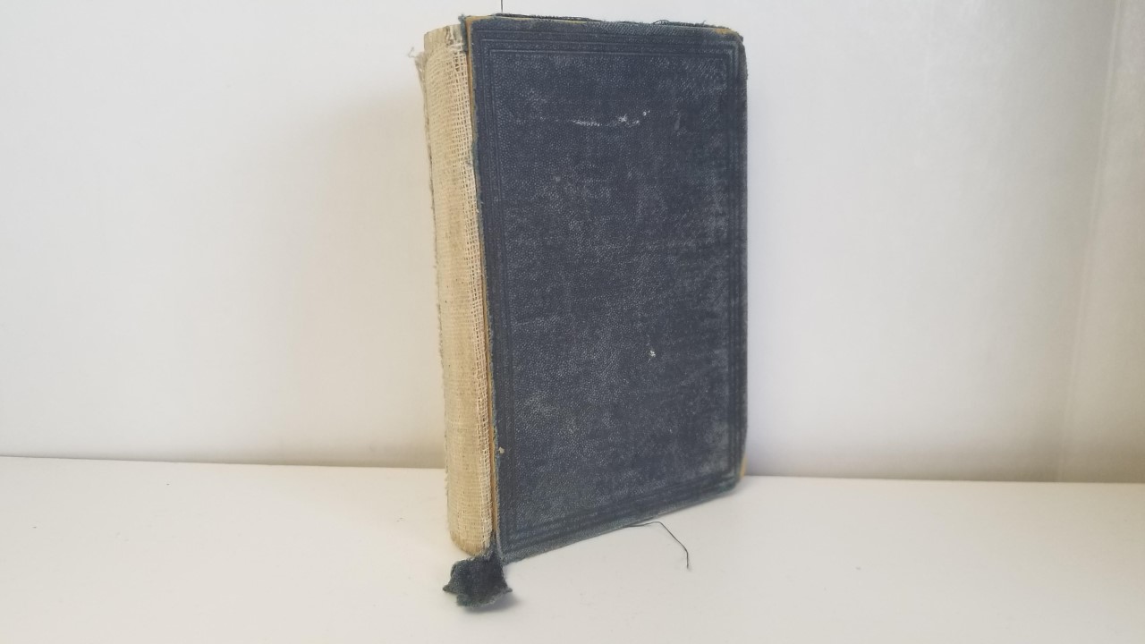 This little pocket hymn book has no spine or back board; the front board is very worn, the preface states 1891. The text block is actually in pretty good condition; back page, 462, is a bit wrinkled.