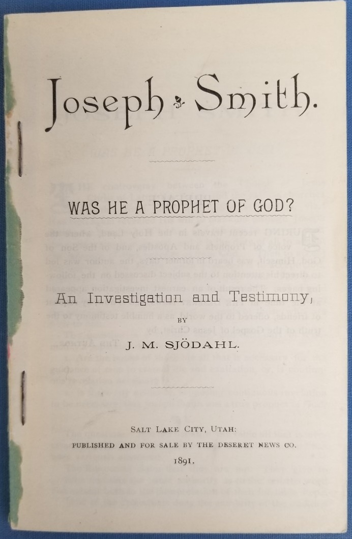 1891 – Joseph Smith, Was He A Prophet of God? An Investigation & Testimony by J. M. Sjodahl