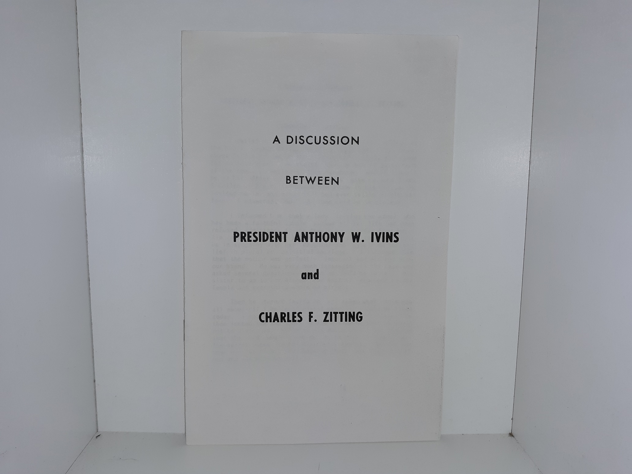 A Discussion Between President Anthony W. Ivins and Charles F. Zitting