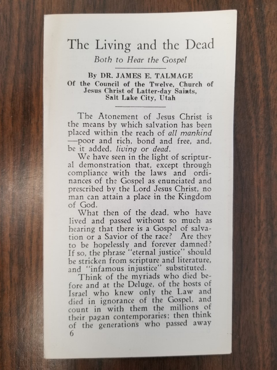 Dr. James E. Talmage ~ The Living and the Dead --- Pamphlet quantity