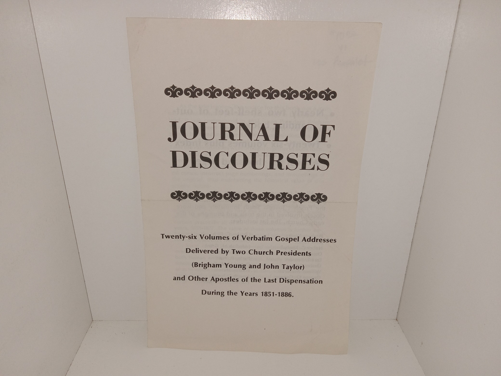 Fair condition, very thin, off-white pamphlet. The pamphlet has a horizontal crease, some wrinkling, and the second page has writing in pencil.
