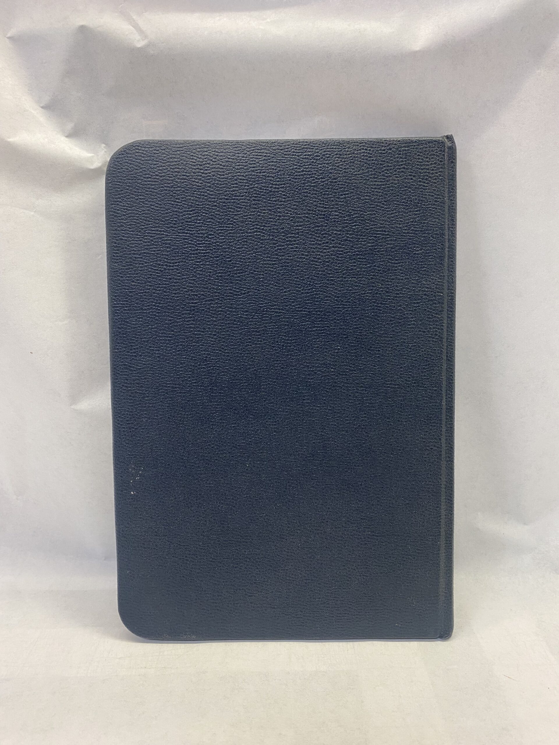 Good condition. The cover has scuffs, scratches, and markings. The cover page has writing in pen, a stain, and a few pages have markings in red. The rest of the pages are clean and unmarked. The edges of the pages have scratches and smudges.