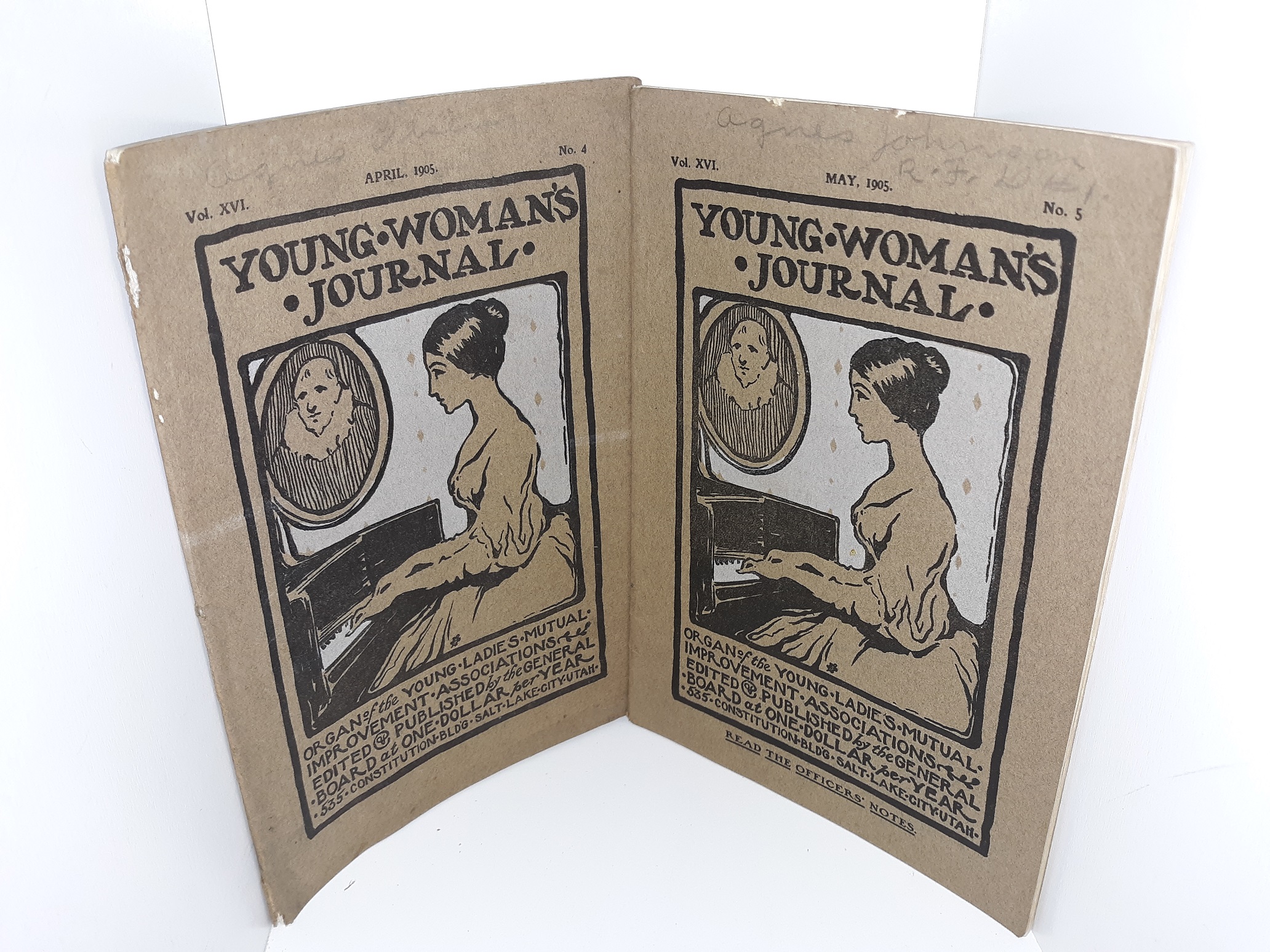 2 fair condition, thin, brown softcovers. The covers have stains, some pieces torn off, tears, writing in pencil, and creasing. The pages throughout are stained, wrinkled, and creased. The first pages have writing in pencil and eraser marks.