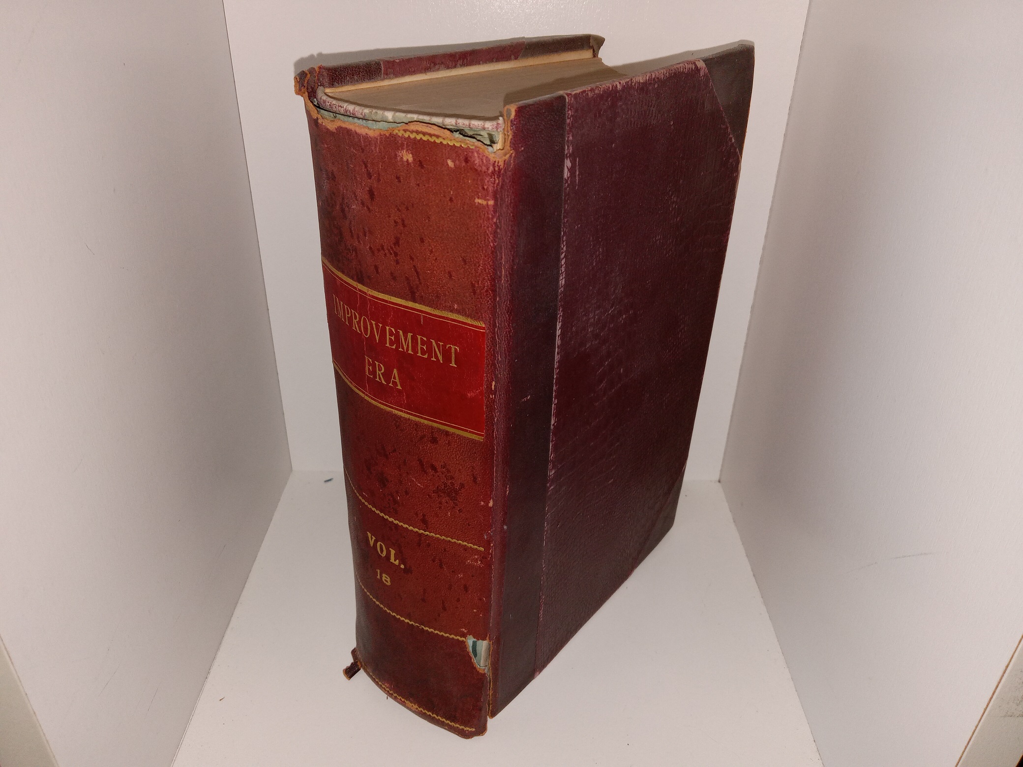 Fair condition, 3/4 leather, thick, hardcover with no dust jacket and a brown spine. The cover has tears, some large pieces torn off, scuffing, and fading. The internal binding is torn and loose. Some pages have tears, stains, or creases, but the text throughout is clear and legible. The front flyleaf has writing in pencil and eraser marks.
