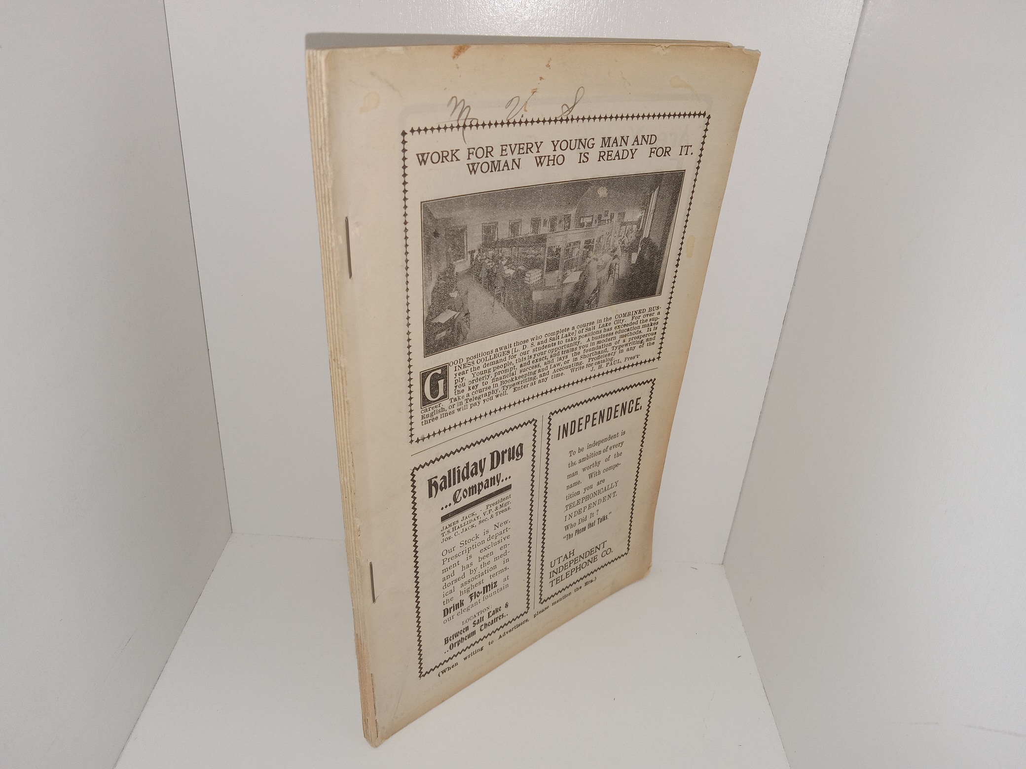 Fair condition, thin, staple-bound softcover missing its wrappers. The first and last pages have some stains. Some pages have tears, creases, wrinkling, or dents. The first and second pages have writing in pencil. Text and illustrations throughout are clear and legible.