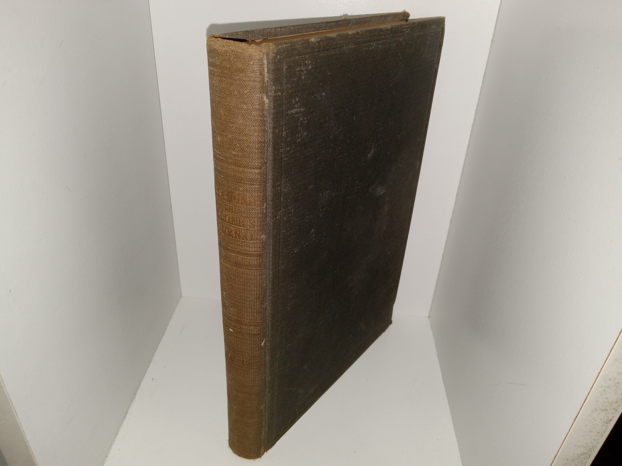 Fair condition, gray hardcover with no dust jacket. The cover has heavy scuffing, fading, stains, some tears, fraying, and slightly crushed corners. The internal binding is torn, causing the title page to be detached from the binding, and some following pages to be partially detached. Some pages have small tears on their edges, and all the pages have yellowed. The front flyleaf has writing in pencil and eraser marks. Text and illustrations throughout are clear and legible.
