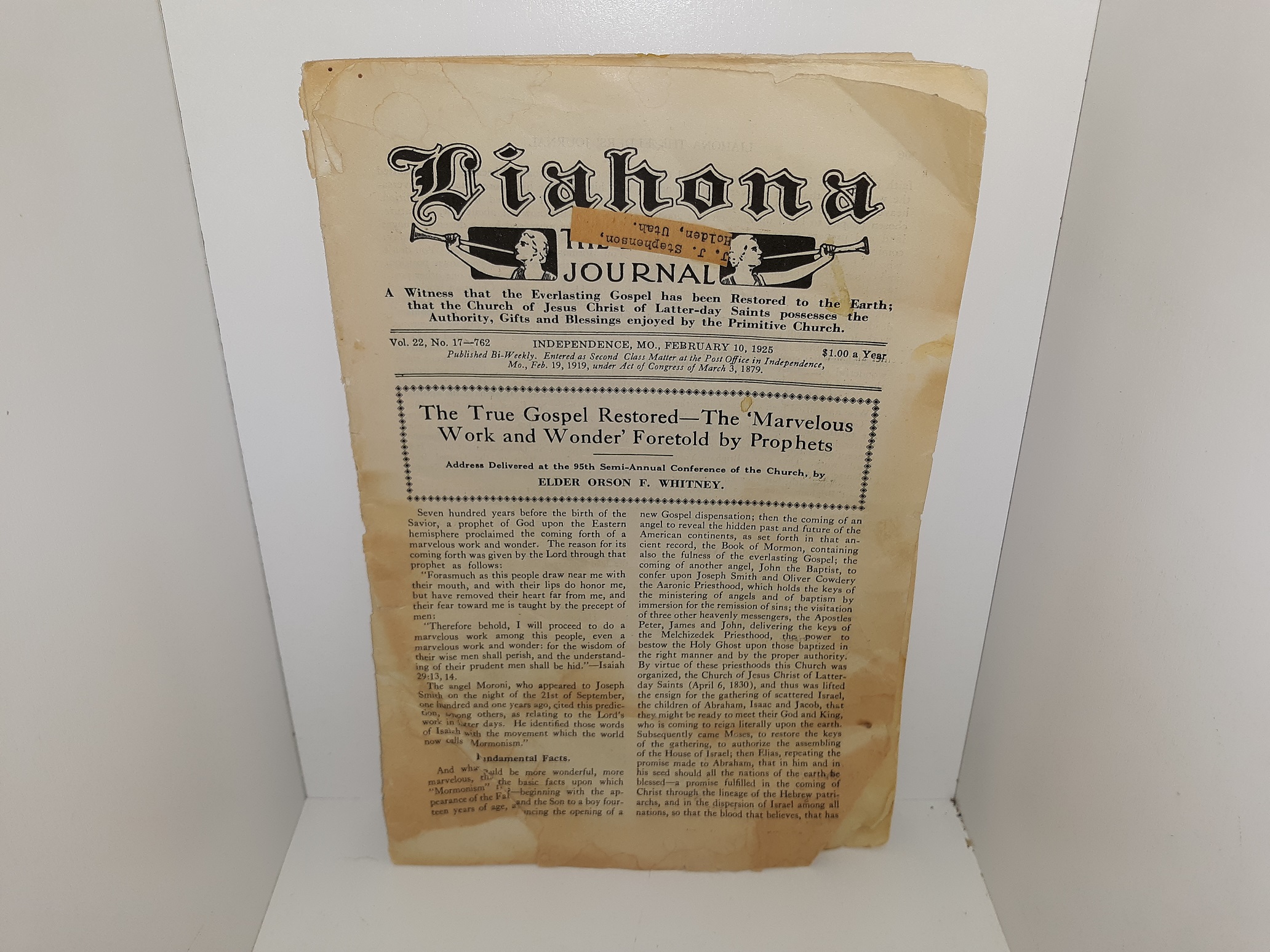 Liahona, The Elders’ Journal: Vol. 22, No. 17—762, February 10, 1925