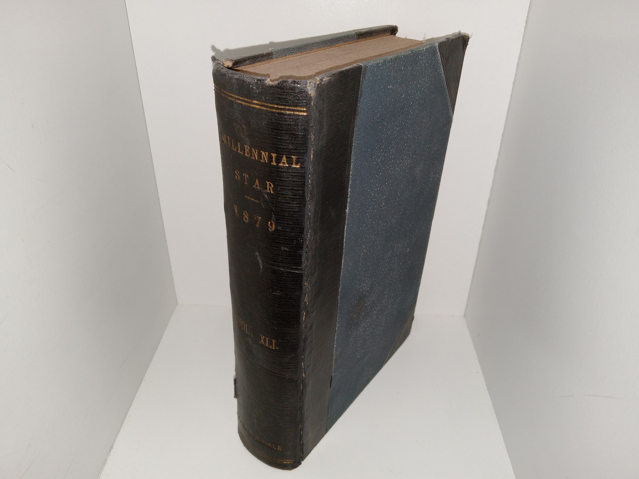 Fair condition, 3/4 leather, hardcover with a black spine and no dust jacket. The cover has bubbling, bent corners, tears, small pieces torn off, fraying, and scuffing. The internal binding is torn. Some pages have wrinkling or stains, but the text throughout is clear and legible. The title page has writing in pencil and eraser marks.