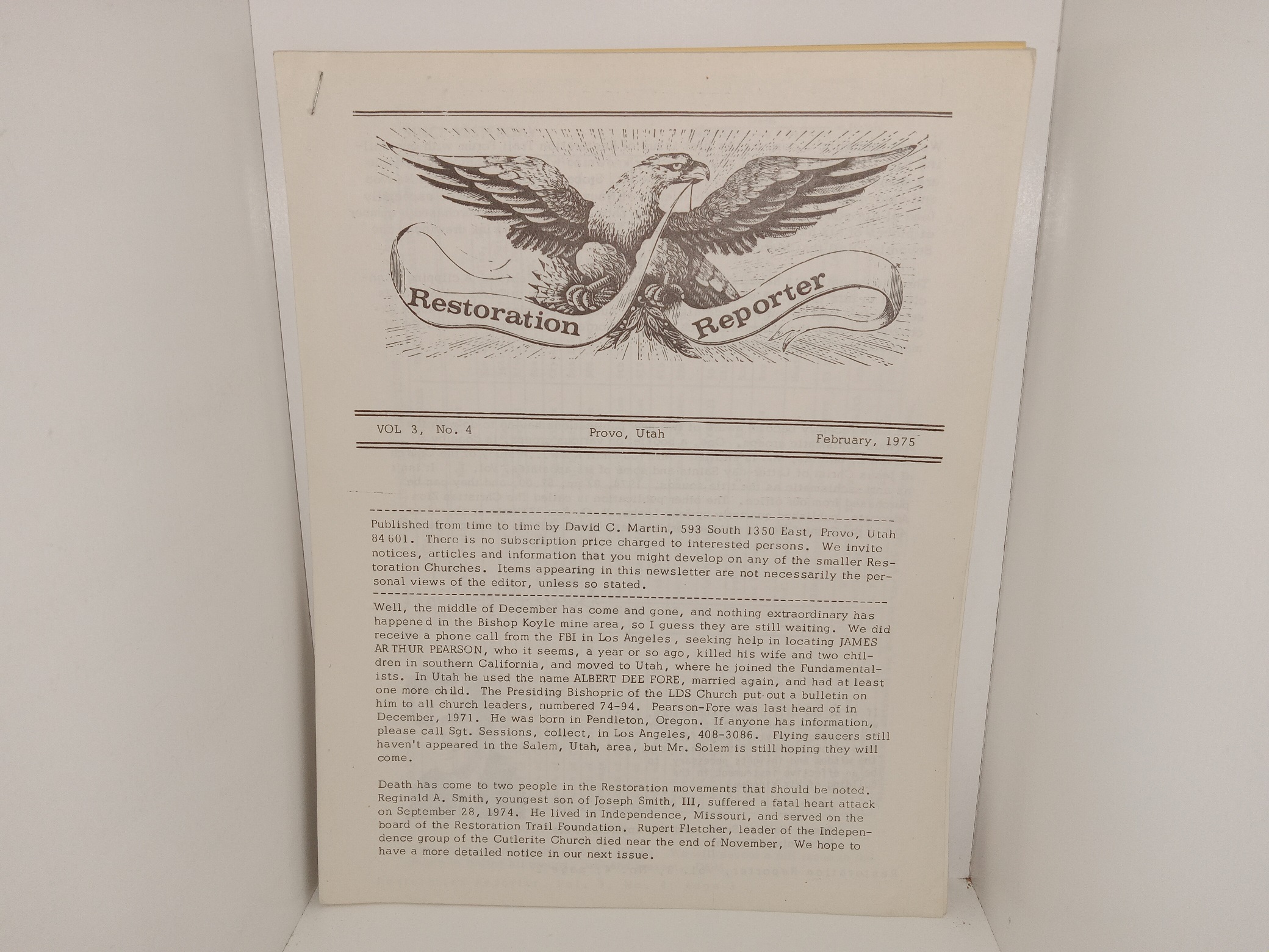 Restoration Reporter: Vol. 3, No. 4, Provo, Utah, February, 1975