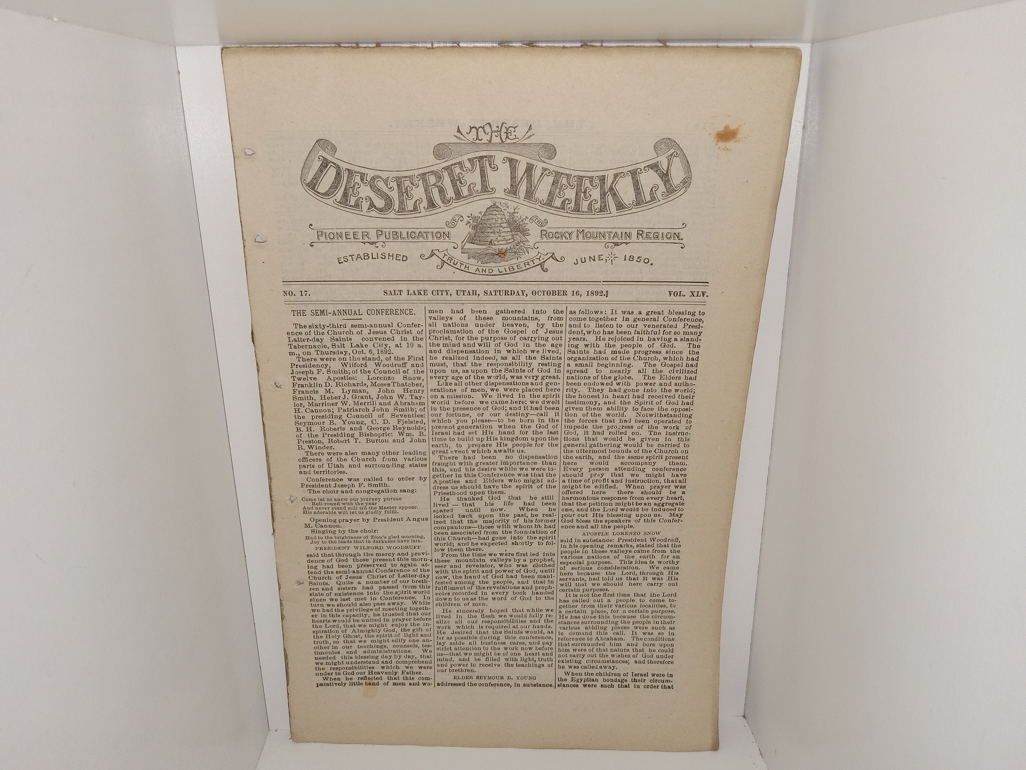 The Deseret Weekly: Vol. 45, No. 17, Salt Lake City, Utah, Saturday, October 16, 1892