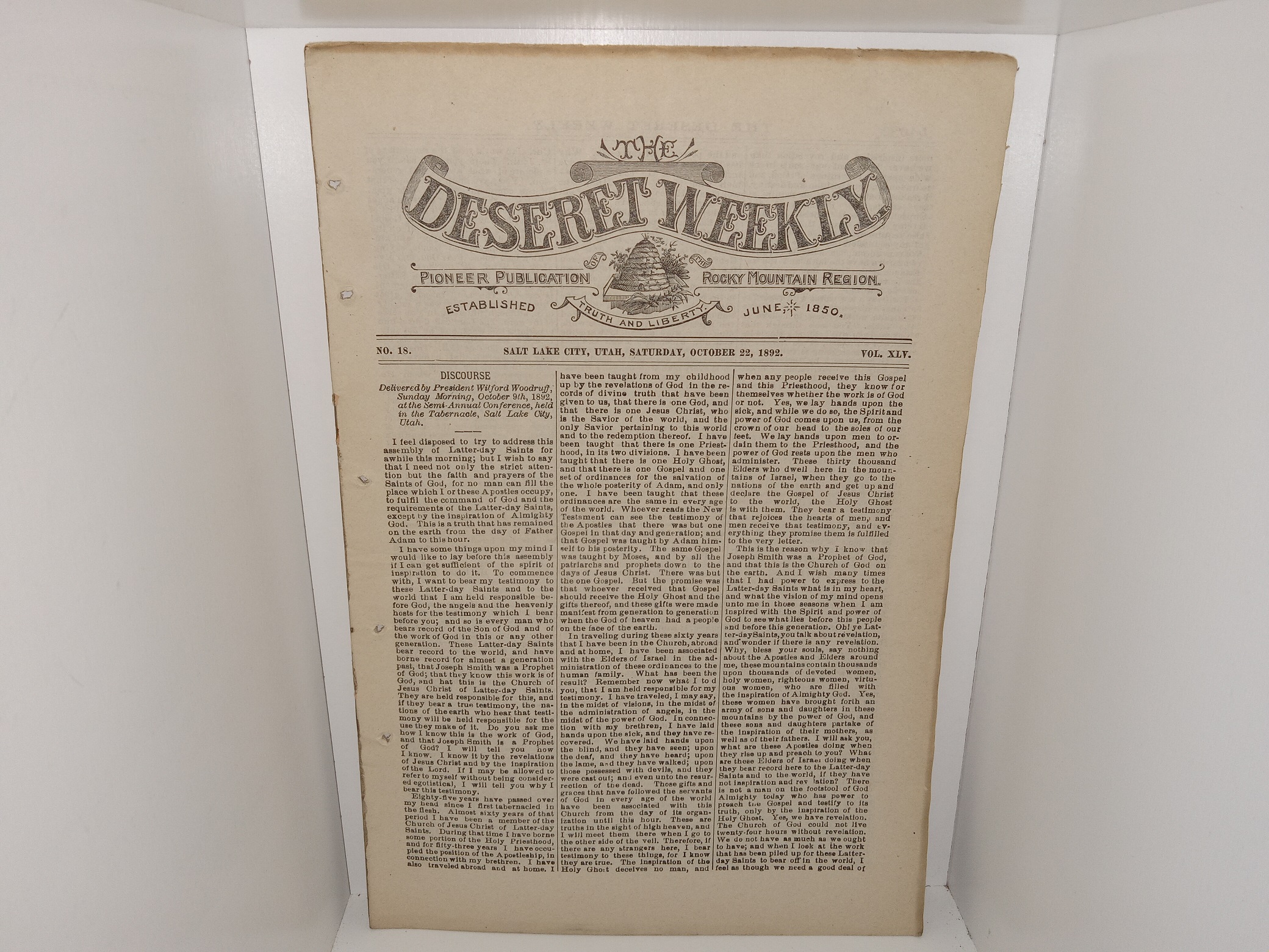 The Deseret Weekly: Vol. 45, No. 18, Salt Lake City, Utah, Saturday, October 22, 1892