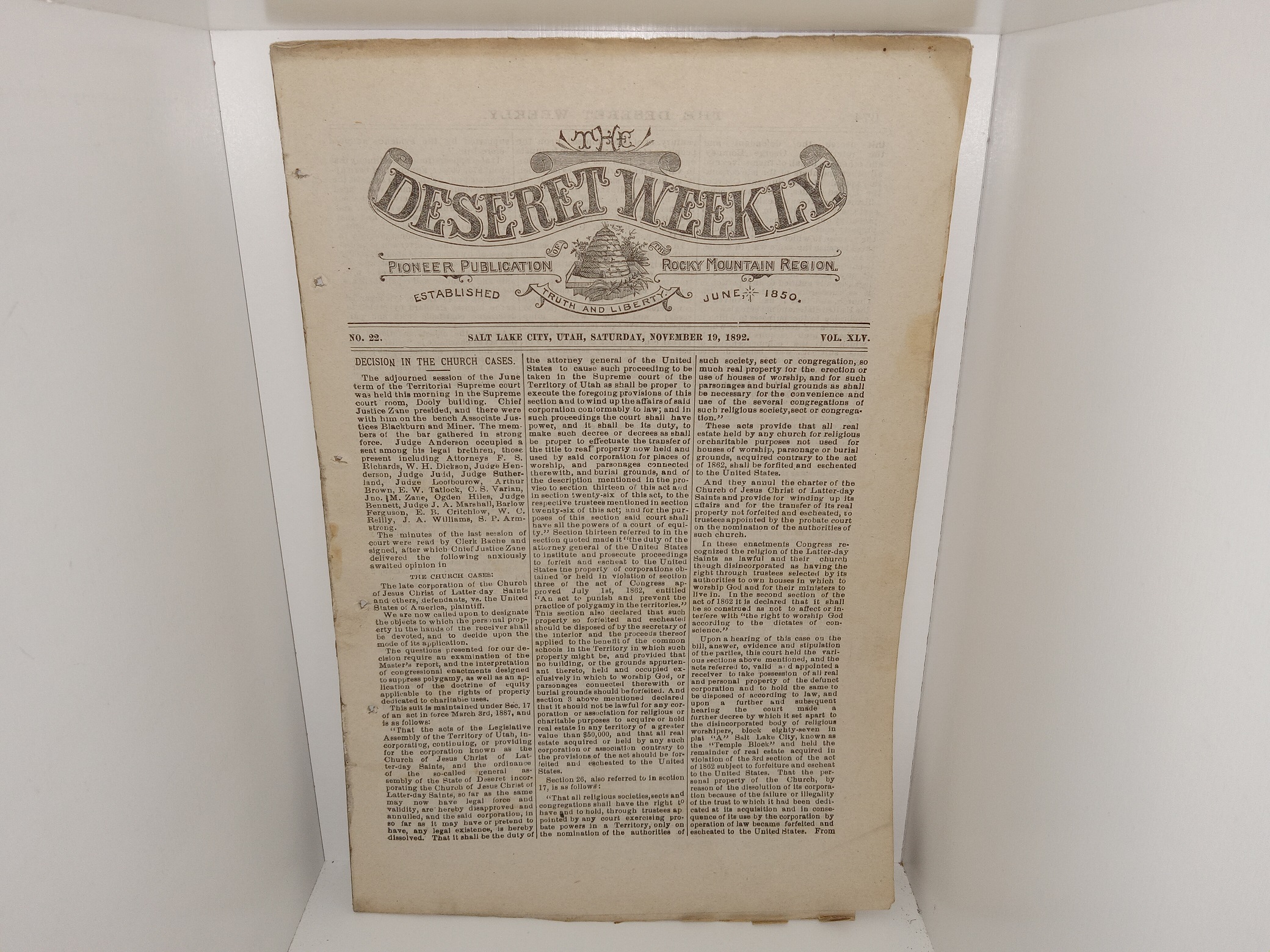 The Deseret Weekly: Vol. 45, No. 22, Salt Lake City, Utah, Saturday, November 19, 1892