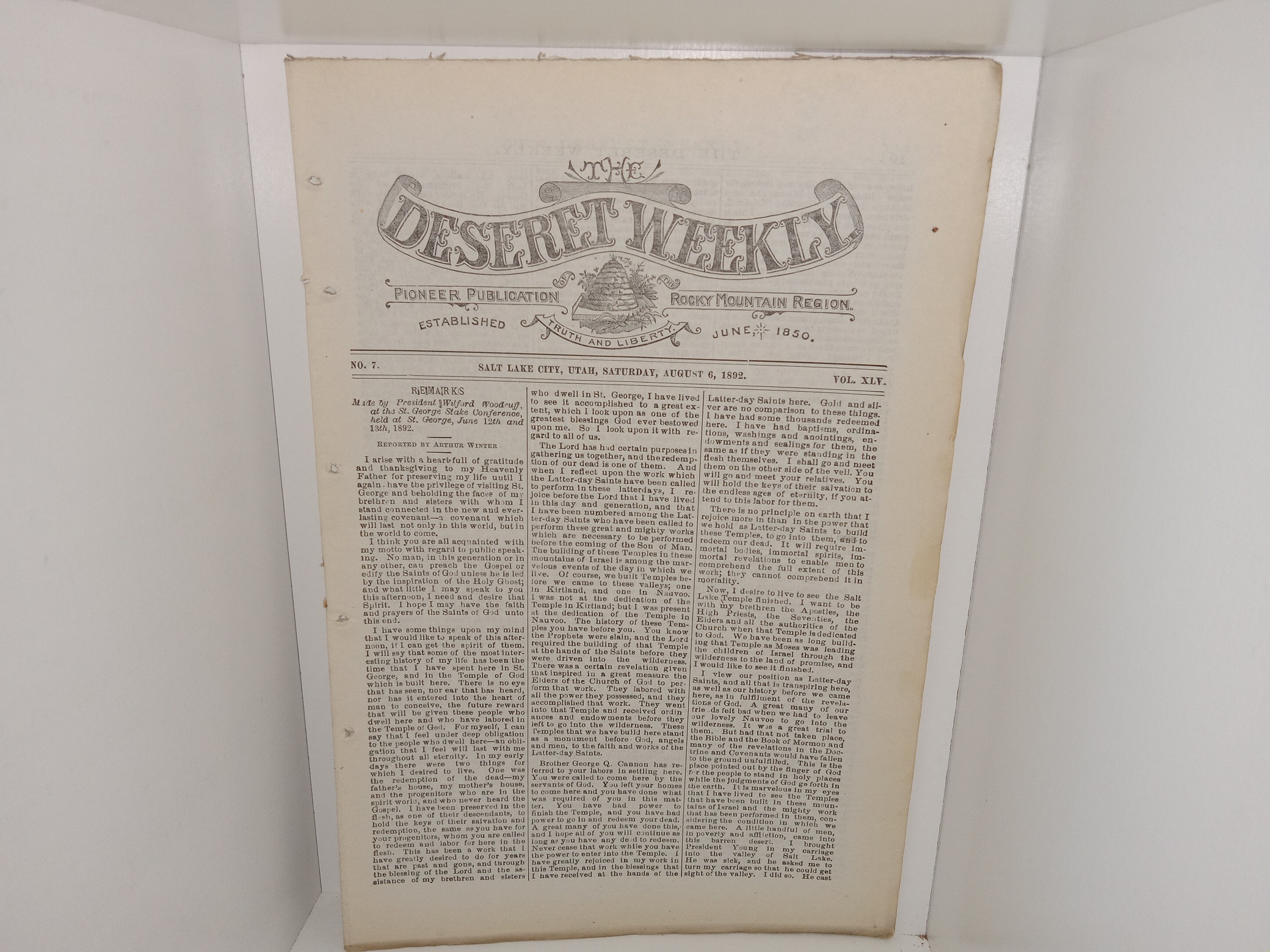 The Deseret Weekly: Vol. 45, No. 7, Salt Lake City, Utah, Saturday, August 6, 1892