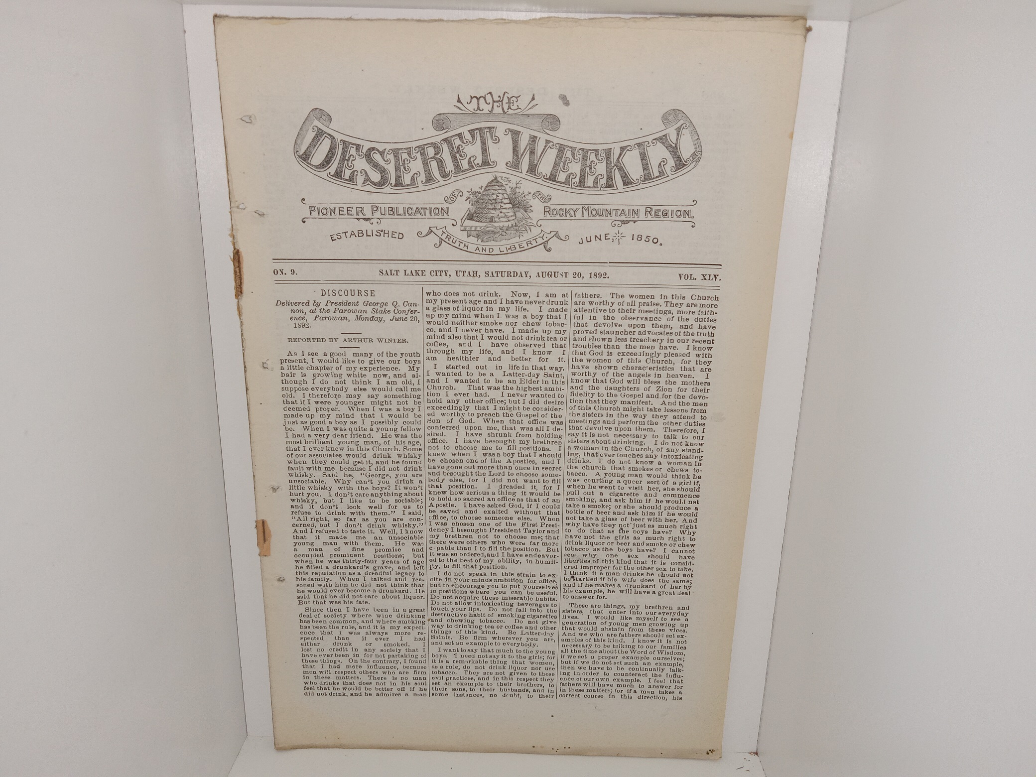 The Deseret Weekly: Vol. 45, No. 9, Salt Lake City, Utah, Saturday, August 20, 1892