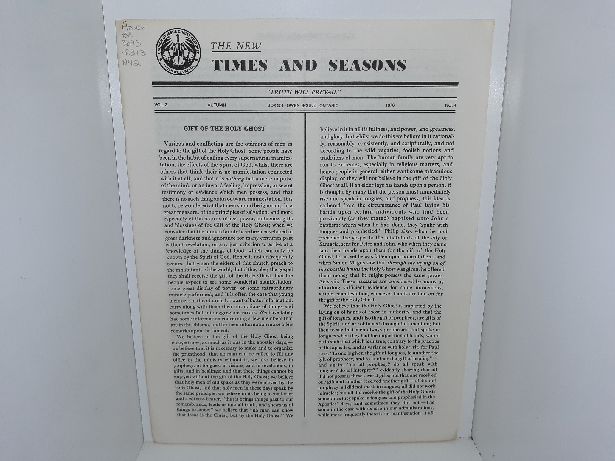 The New Times and Seasons: Vol. 3, No. 4, Autumn, 1976