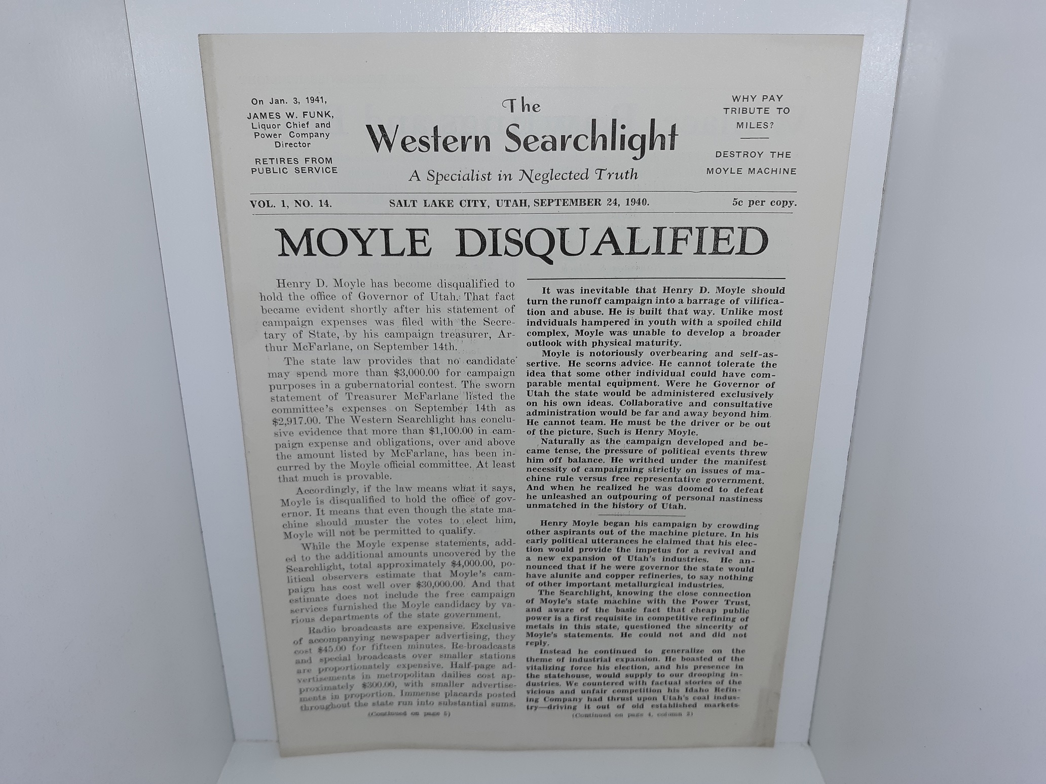 The Western Searchlight: A Specialist in Neglected Truth: Vol. 1, No. 14, Salt Lake City, Utah, September 24, 1940