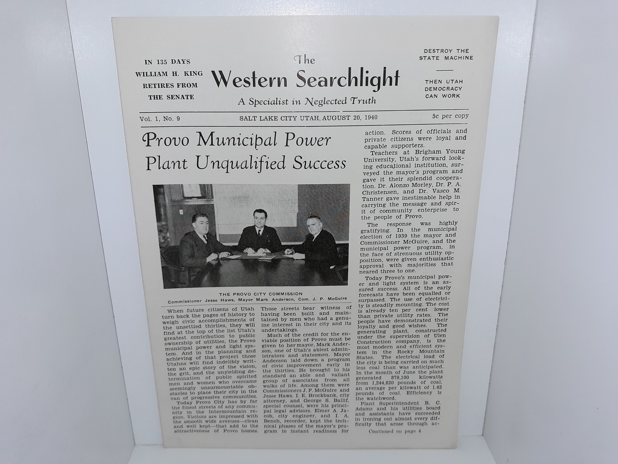 The Western Searchlight: A Specialist in Neglected Truth: Vol. 1, No. 9, Salt Lake City, Utah, August 20, 1940