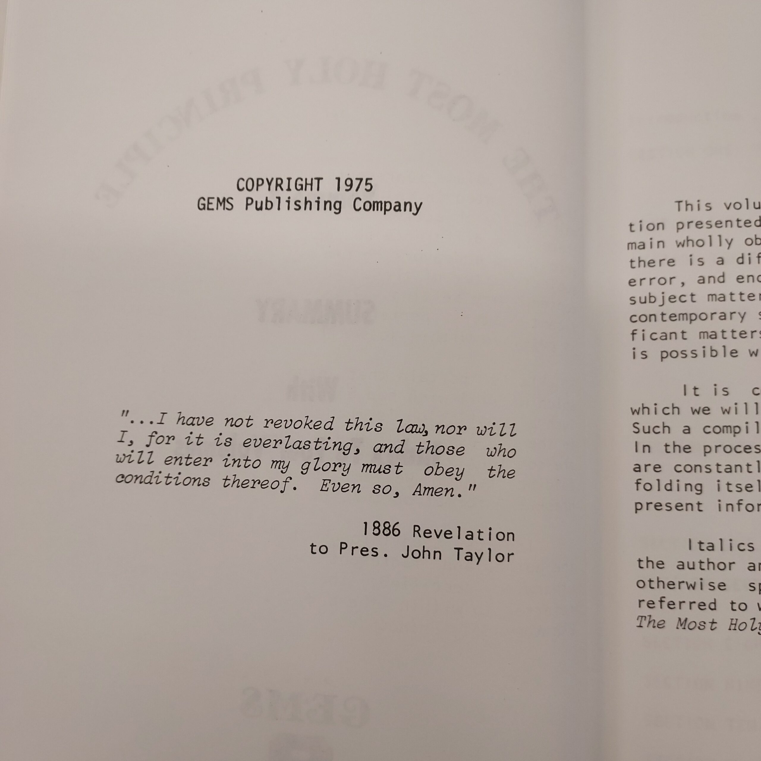The Most Holy Principle Vol 4-Hardcover-1975