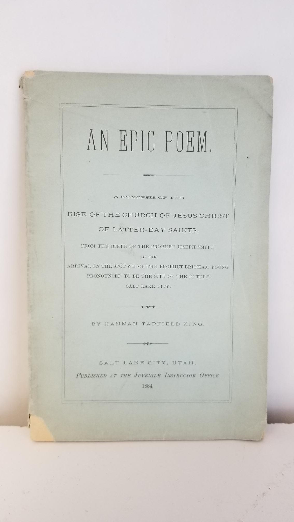 An Epic Poem — A Synopsis of The Rise of The Church of Jesus Christof Latter-Day Saints, From the Birth of the Prophet Joseph Smith to the Arrival on the Spot Which the Prophet Brigham Young Pronounced to be the Site of the Future Salt Lake City.