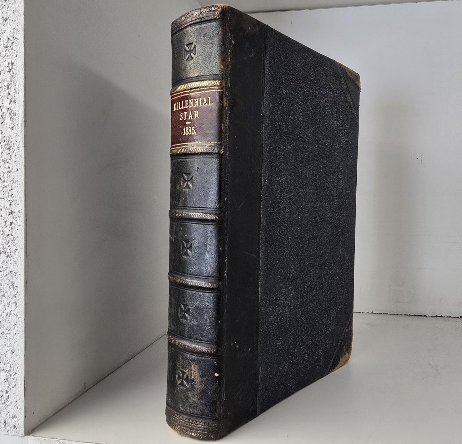 This volume is bound in 3/4 black leather with a red label on the spine, and raised bands on the spine; text is nice and clean throughout; there are some ink inscriptions inside the front cover.