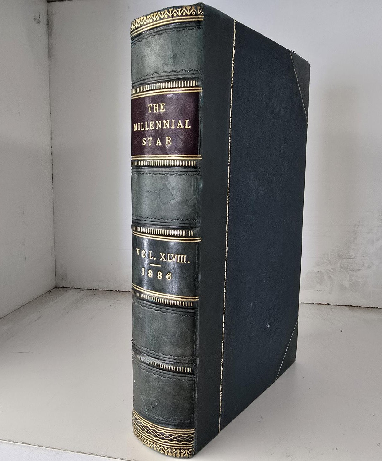 1886 — Millennial Star — Volume XLVIII — 3/4 Green Leather, Raised Bands, Gilded Page Edges — Very Nice