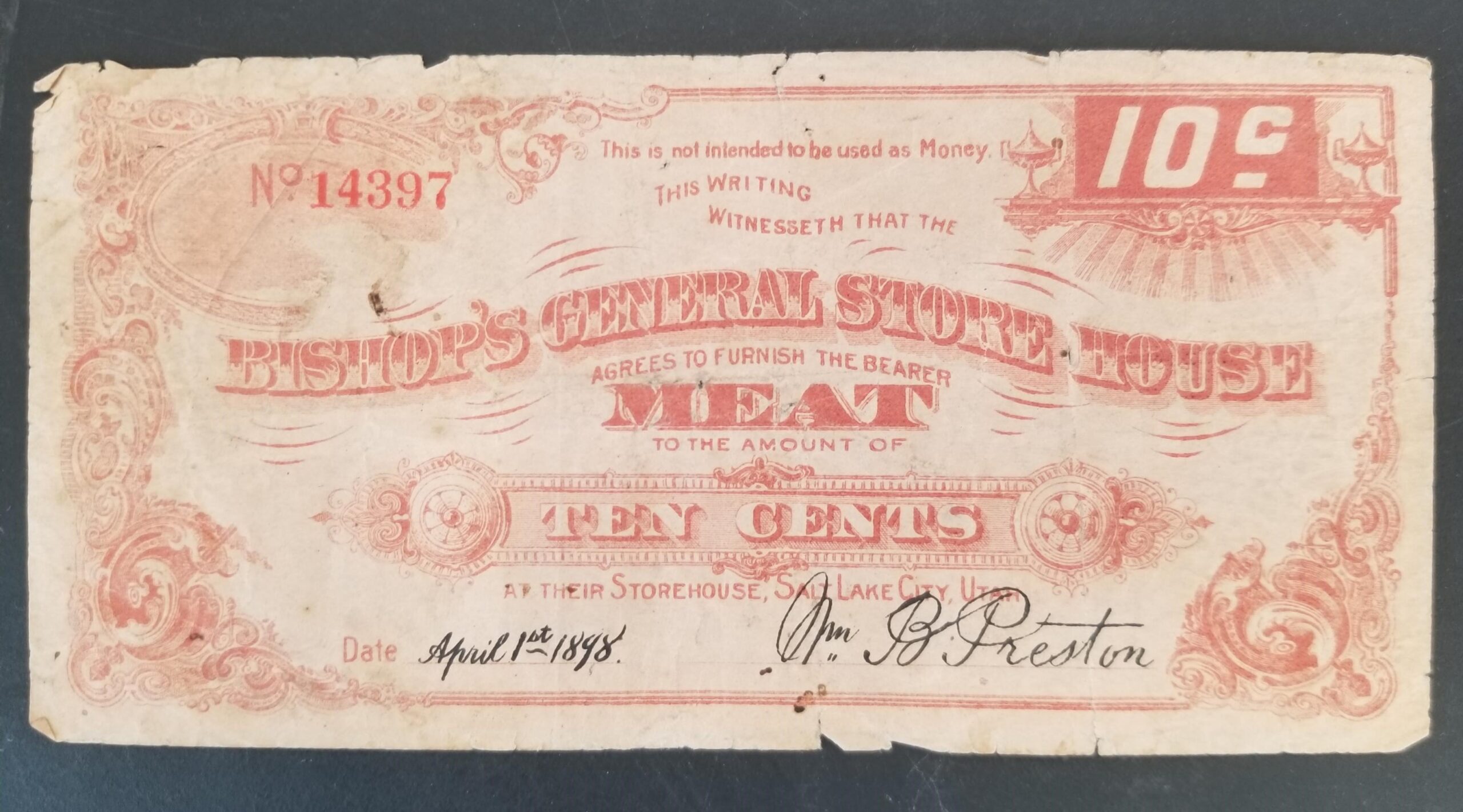 key search words: Mormon Mormons Mormonism LDS Church of Jesus Christ of Latter-day Saints storehouse note bill money paper script note notes bill bills paper money bishop storehouses store house