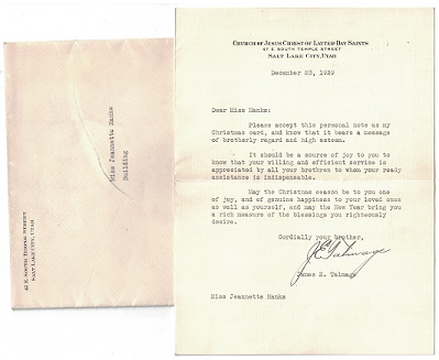 1929 Letter Signed by James E. Talmage ~ With Envelope