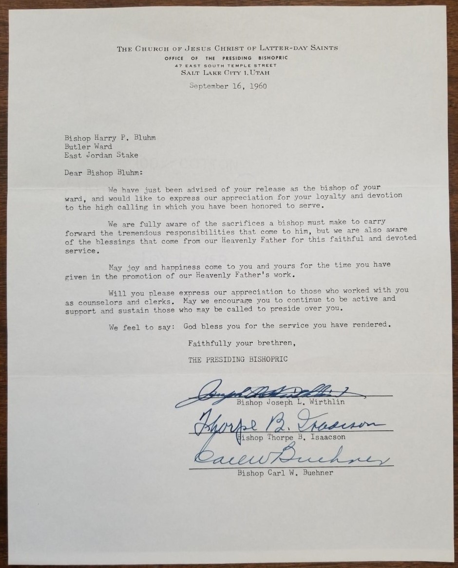 mormon mormons mormonism lds bishop bishops bishopric letter letters signed signature signatures autograph autographs autographed