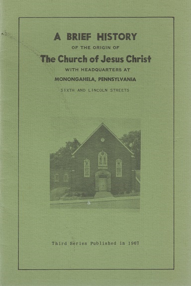 A Brief History of the Origin of The Church of Jesus Christ with Headquarters at Monongahela, Pennsylvania Sixth and Lincoln Streets, Third Series Published in 1967. Charles Ashton, Alma B. Cadman, Wm. H. Cadman, Committee, Printed by The Church of Jesus Christ, booklet, 9 pages. Very good condition. …………………………………………..v1 file A.